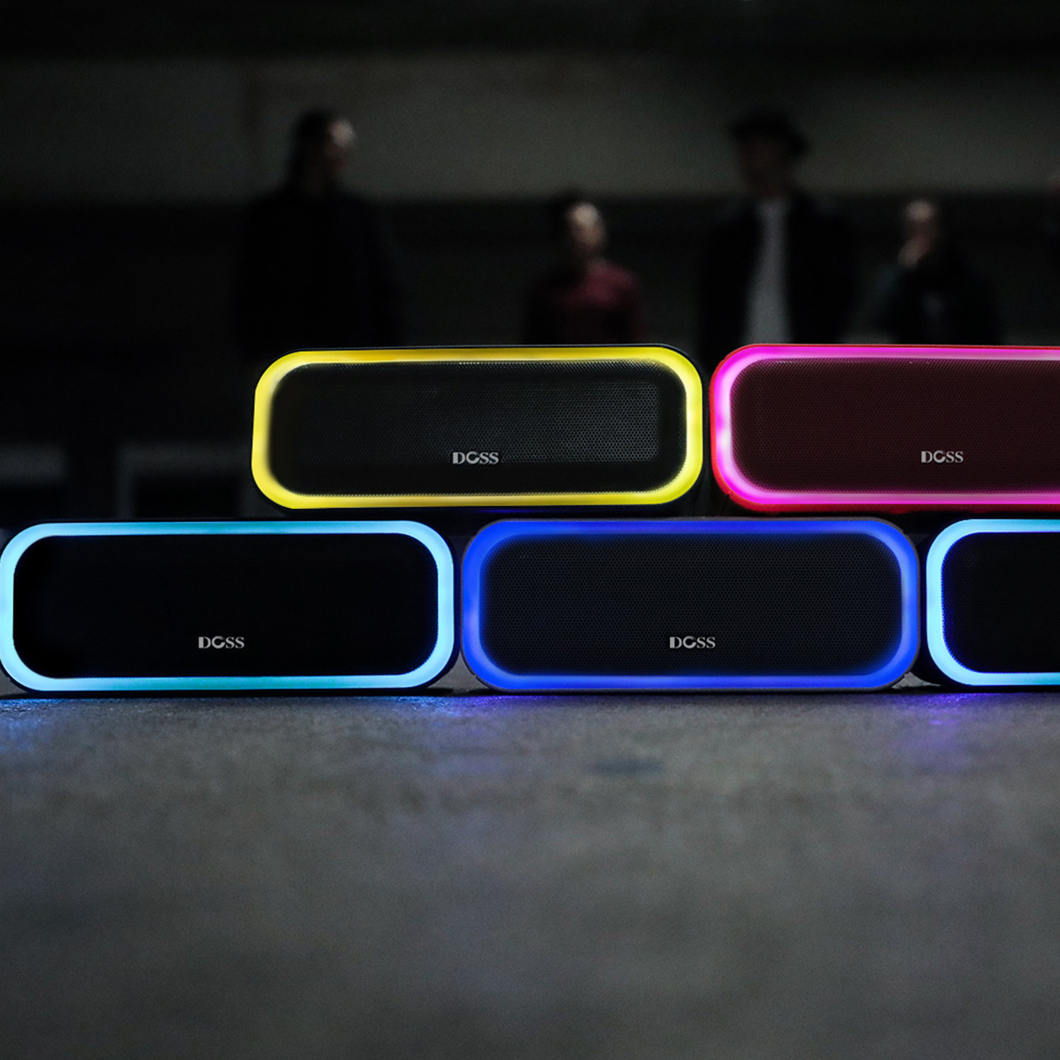 The DOSS SoundBox Pro is a portable, completely wireless Bluetooth speaker with impressive 20W stereo sound and active extra bass. You can easily pair two speakers together to enjoy true stereo sound, and activate the colorful LEDs to really get the party started.