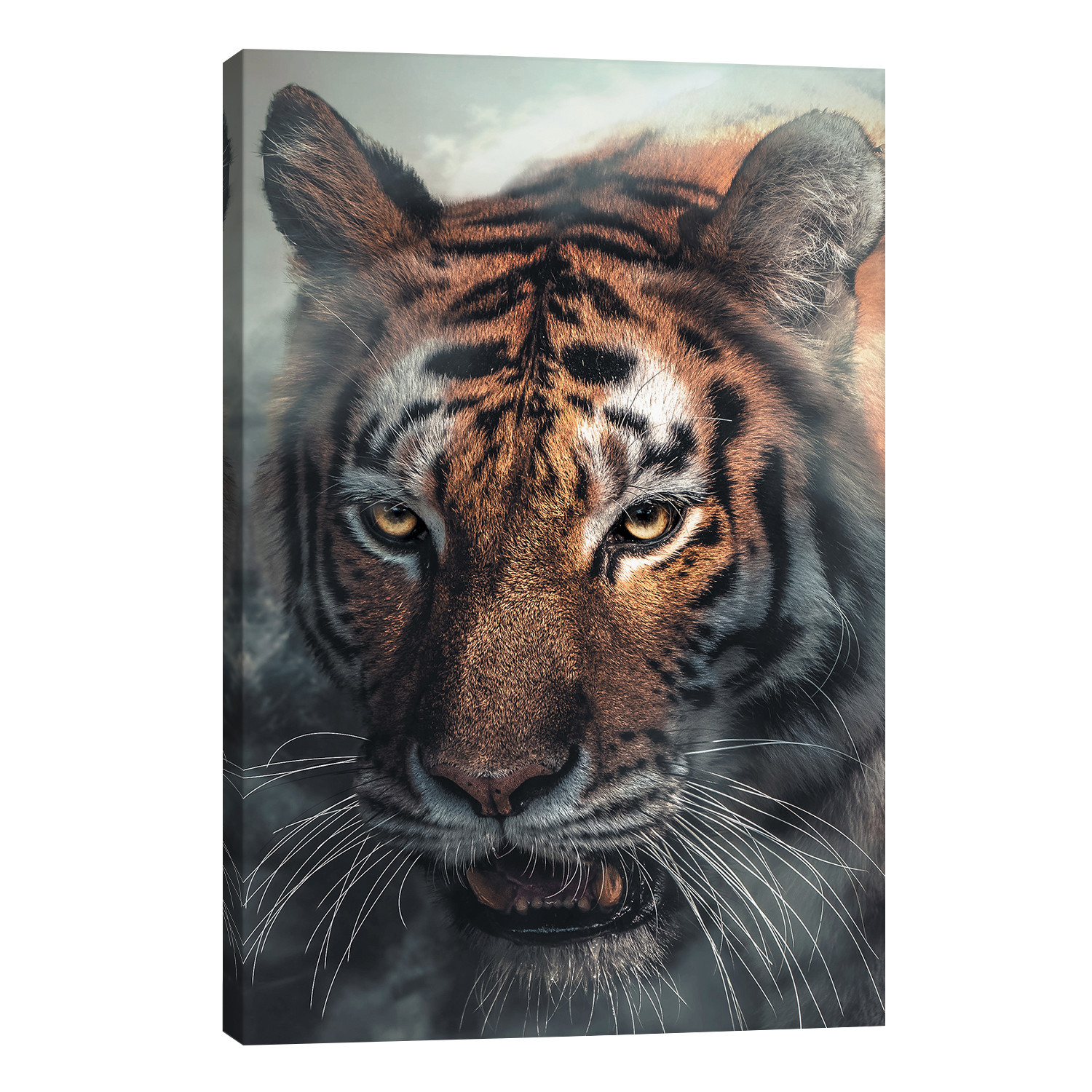 This collection of gallery quality canvas prints features double exposure works of art meant to inspire your imagination. These eye-catching pieces celebrate iconoclastic pairings, featuring lush environments and wild animals.