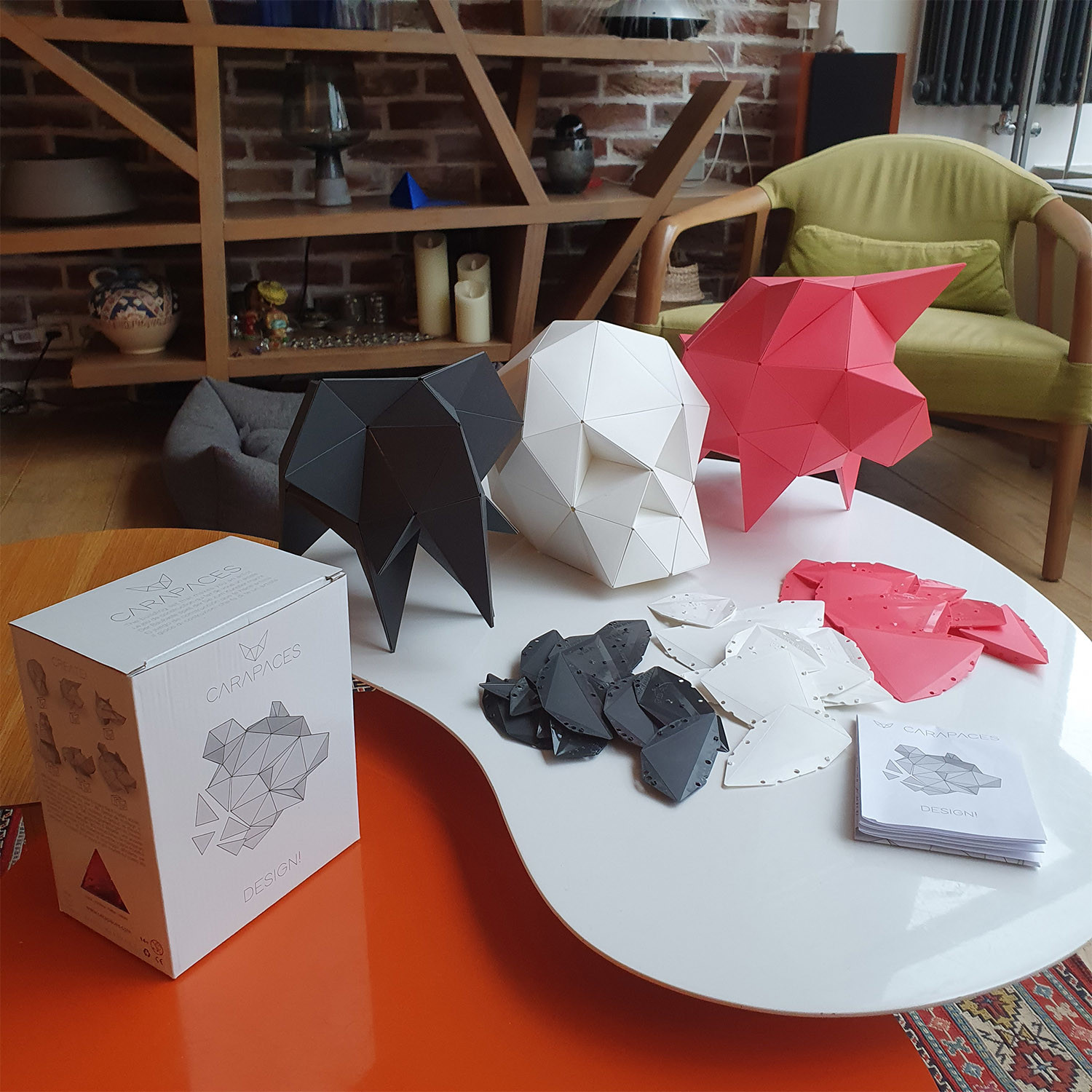 CARAPACES Design Puzzle is a construction game that makes you an artist! CARAPACES includes 100 similarly colored triangles you can clip together to create incredible contemporary sculptures without tools or glue. When you're ready for a change, you can easily pull them apart and reassemble them into something entirely new.