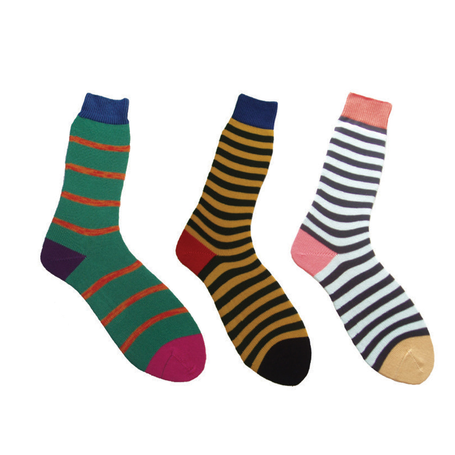 Socks // Green + Black + White Stripes // Pack of 3