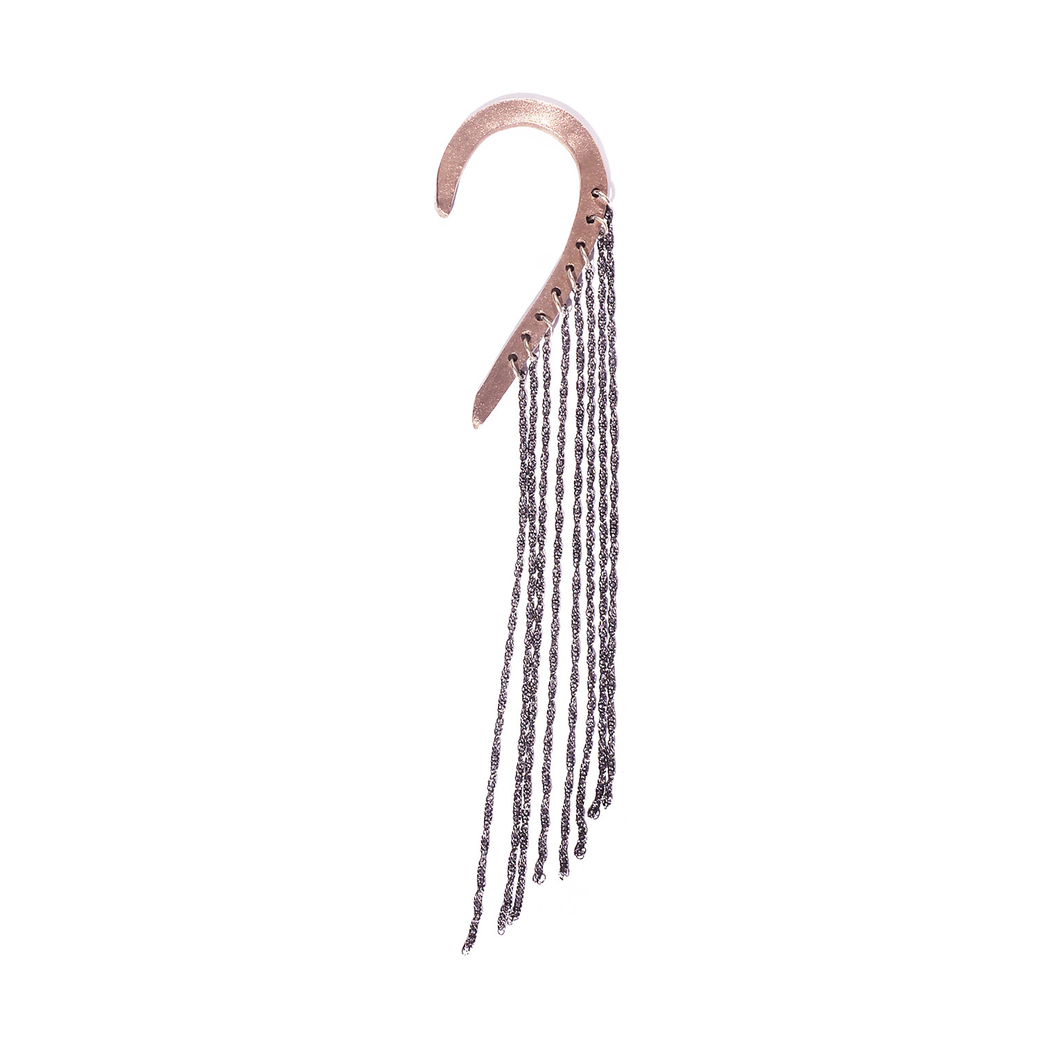 Made of metals in a beautiful rose bronze color with gunmetal chains, this Earcuff + Chains is perfect to wear everyday for a casual, sexy style. The ear cuff is beautiful to wear alone or with other ear pieces from the 'Nymph' collection, defining the wild freedom that this collection encapsulates.