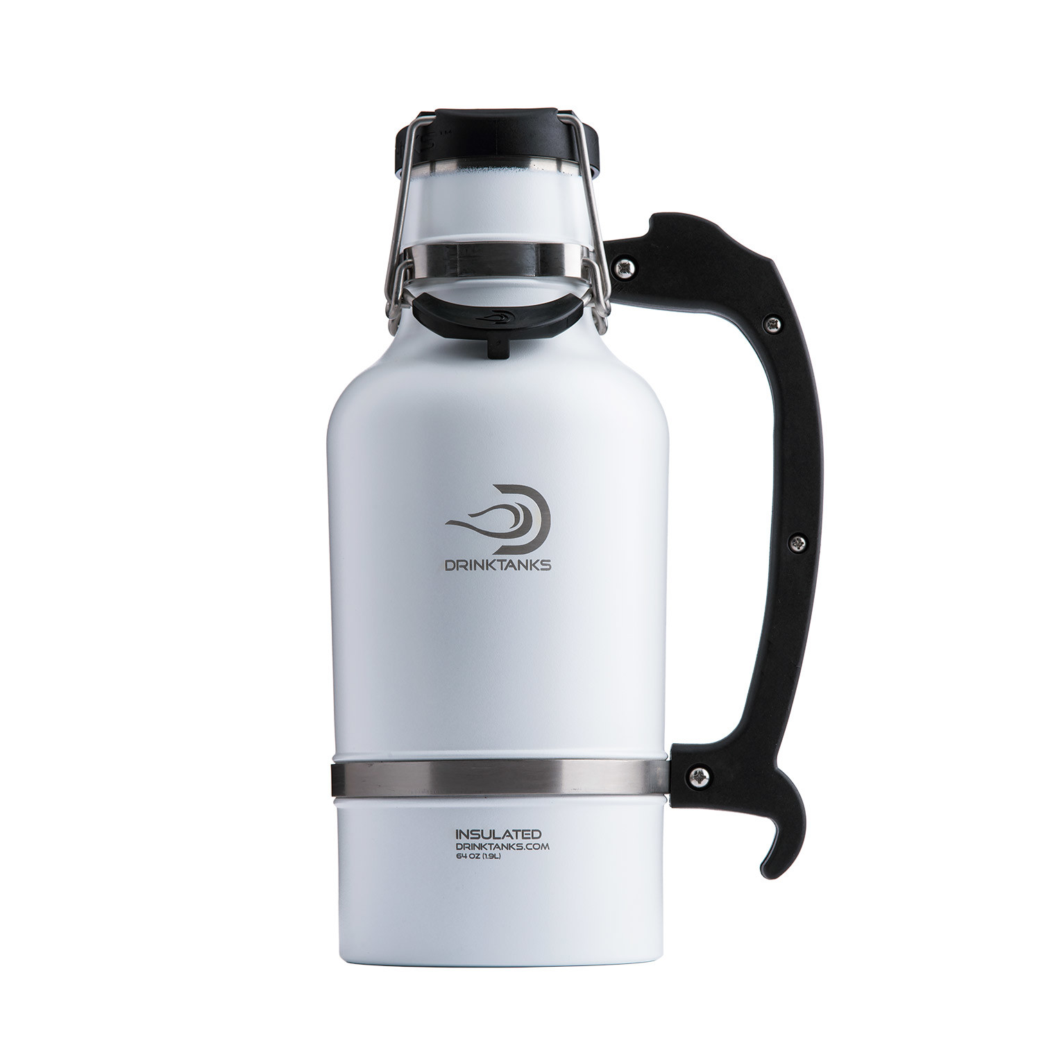 This incredible DrinkTanks® Growler is made from food-grade 18/8 stainless steel — the same gauge steel used by breweries and dairies — making it both highly durable, safe, and sanitary for any drink. Durable powder coating provides each one with a pop of color, cheerfully finishing the double-wall construction with an insulating vacuum between the chambers. This highly effective thermal technology keeps iced drinks ice cold for up to 24 hours and hot drinks piping hot for up to 12 hours, with no condensation or sweating. And best of all, no metal or plastic flavors!
