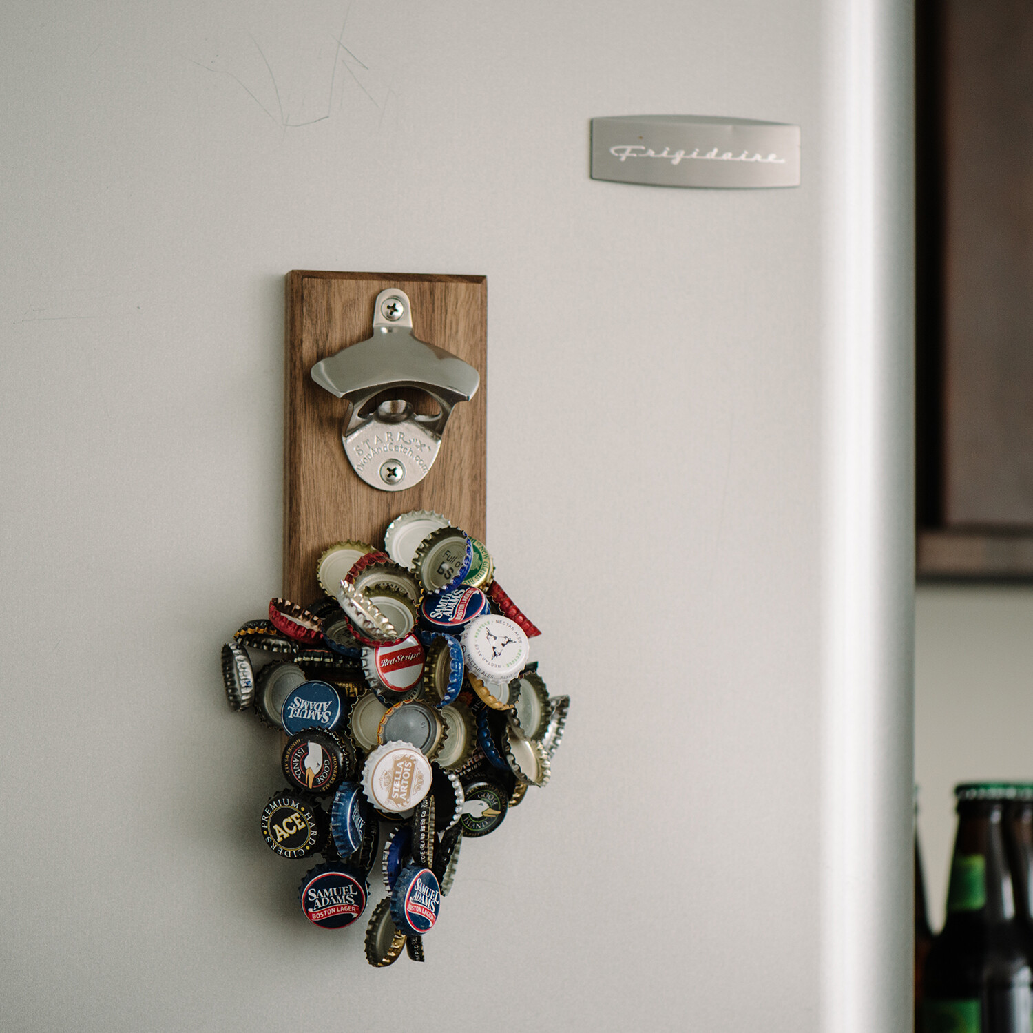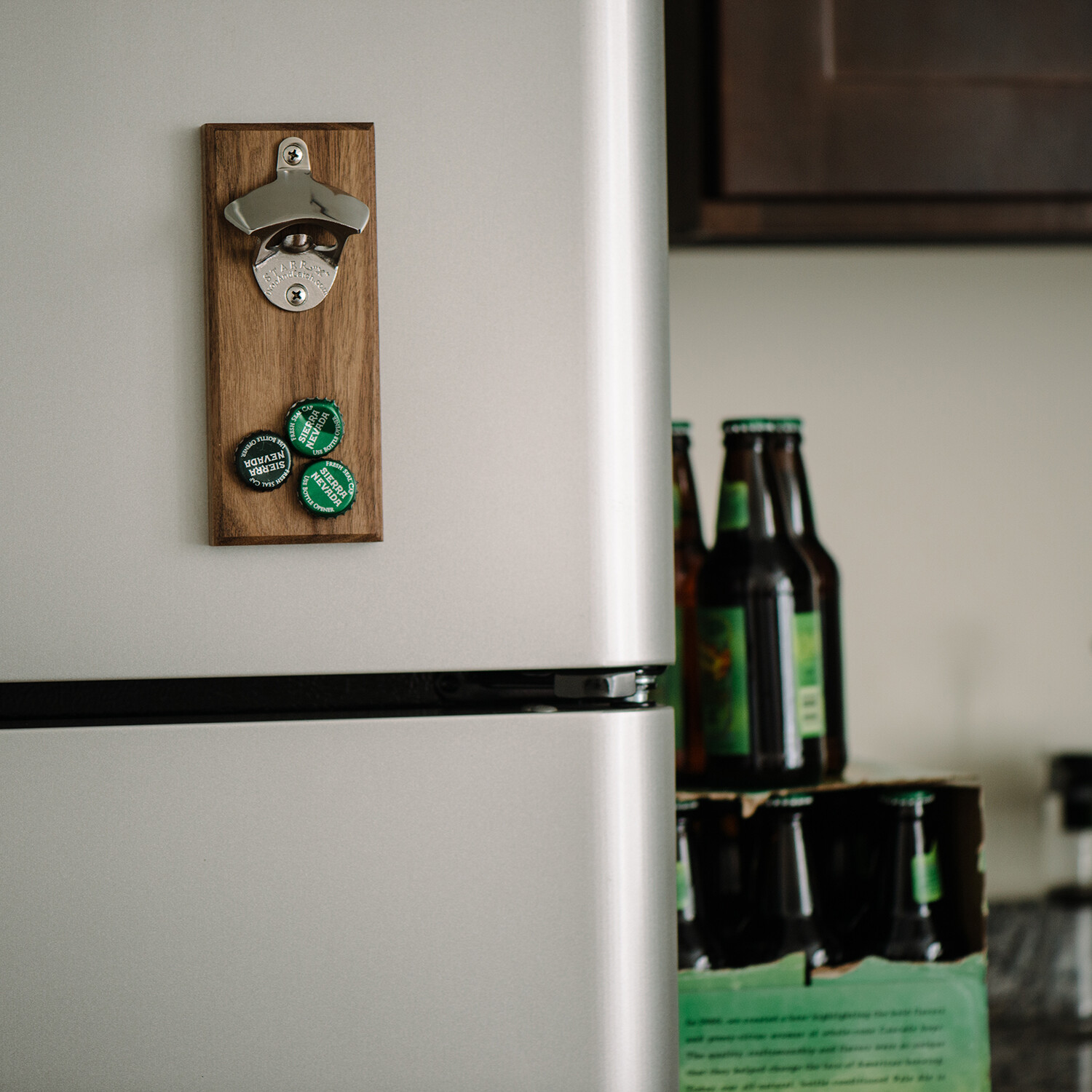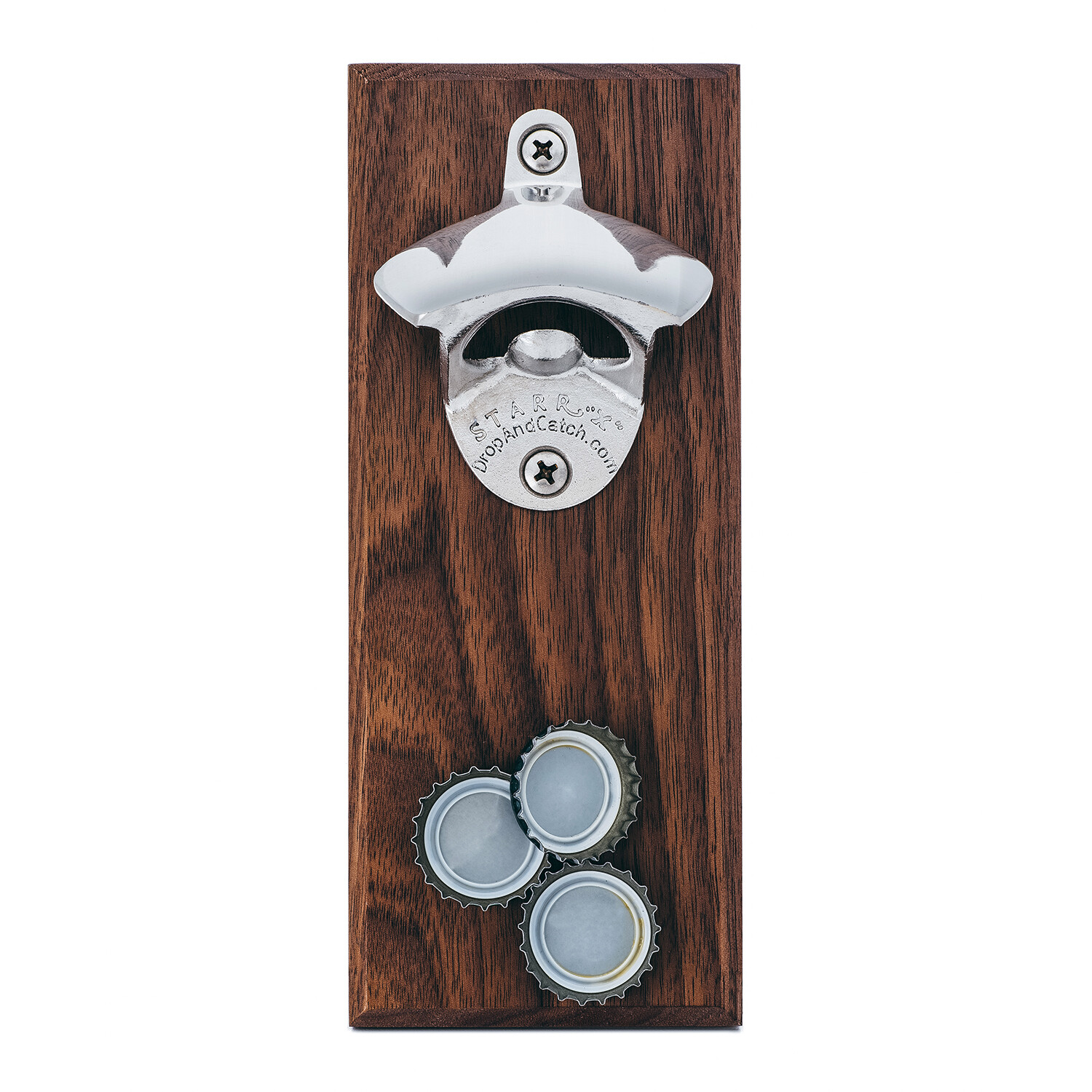The Porter Magnetic Bottle Opener catches the caps so it's easy to open any type of bottle with just one hand. This ingenious design is made from genuine American walnut wood and finished with lacquer for maximum durability. It can be magnetically mounted or wall mounted with the included screws.