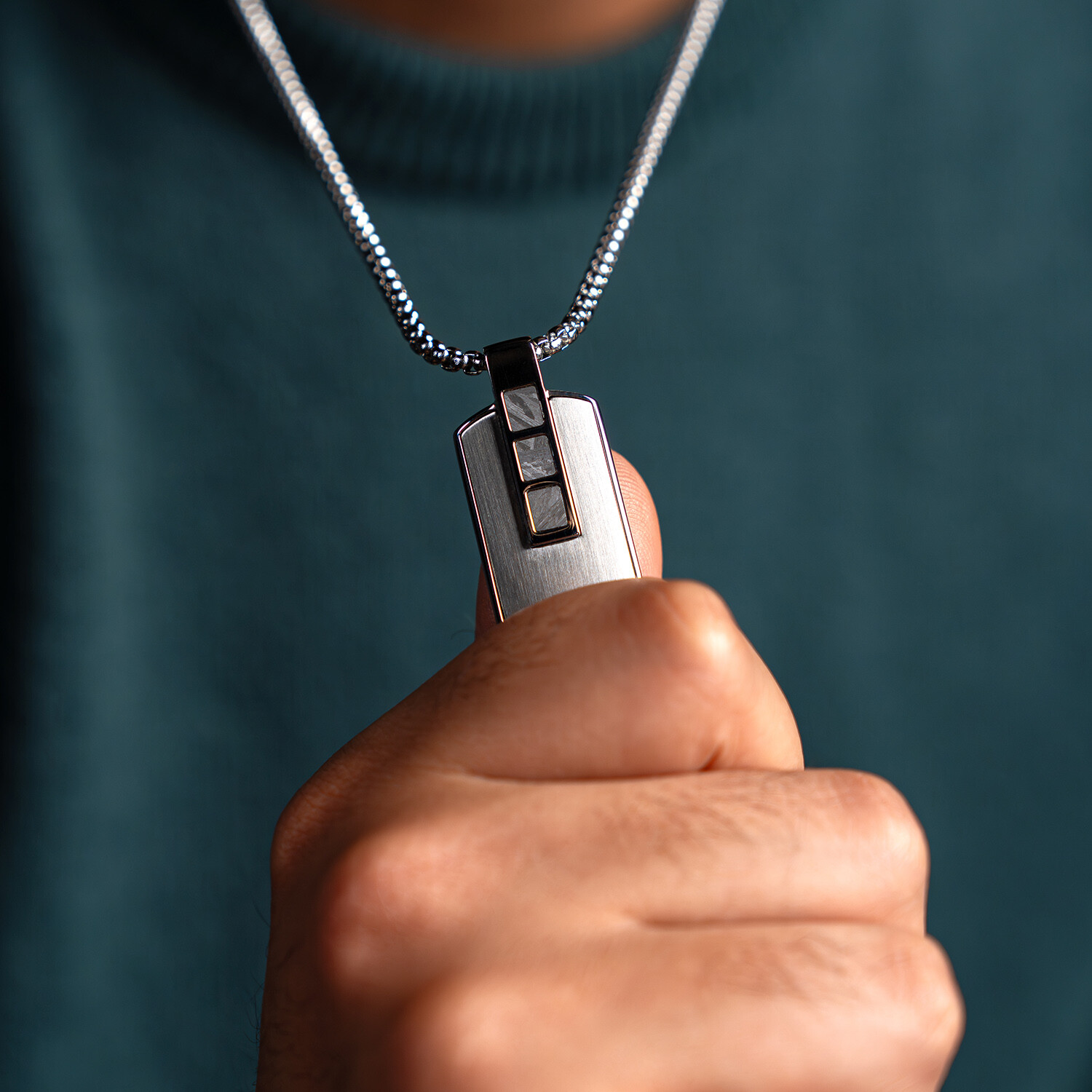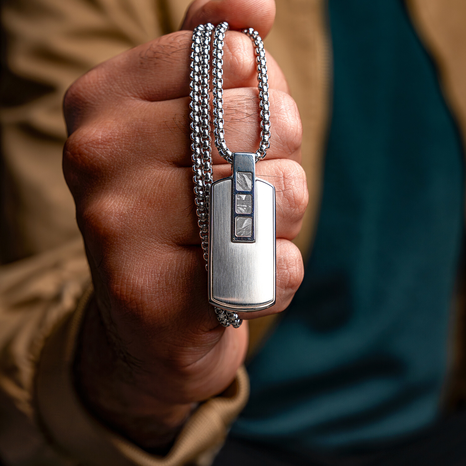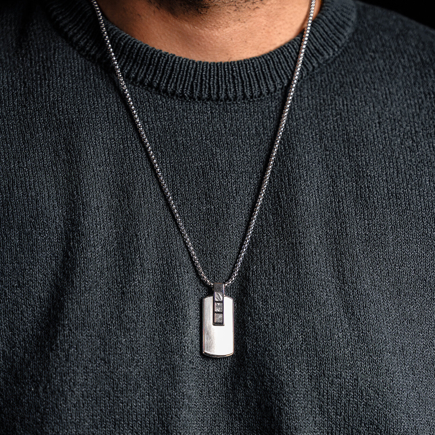 Duxot Accelero Stainless Steel + Meteorite Dog Tag Necklace // 25.6"