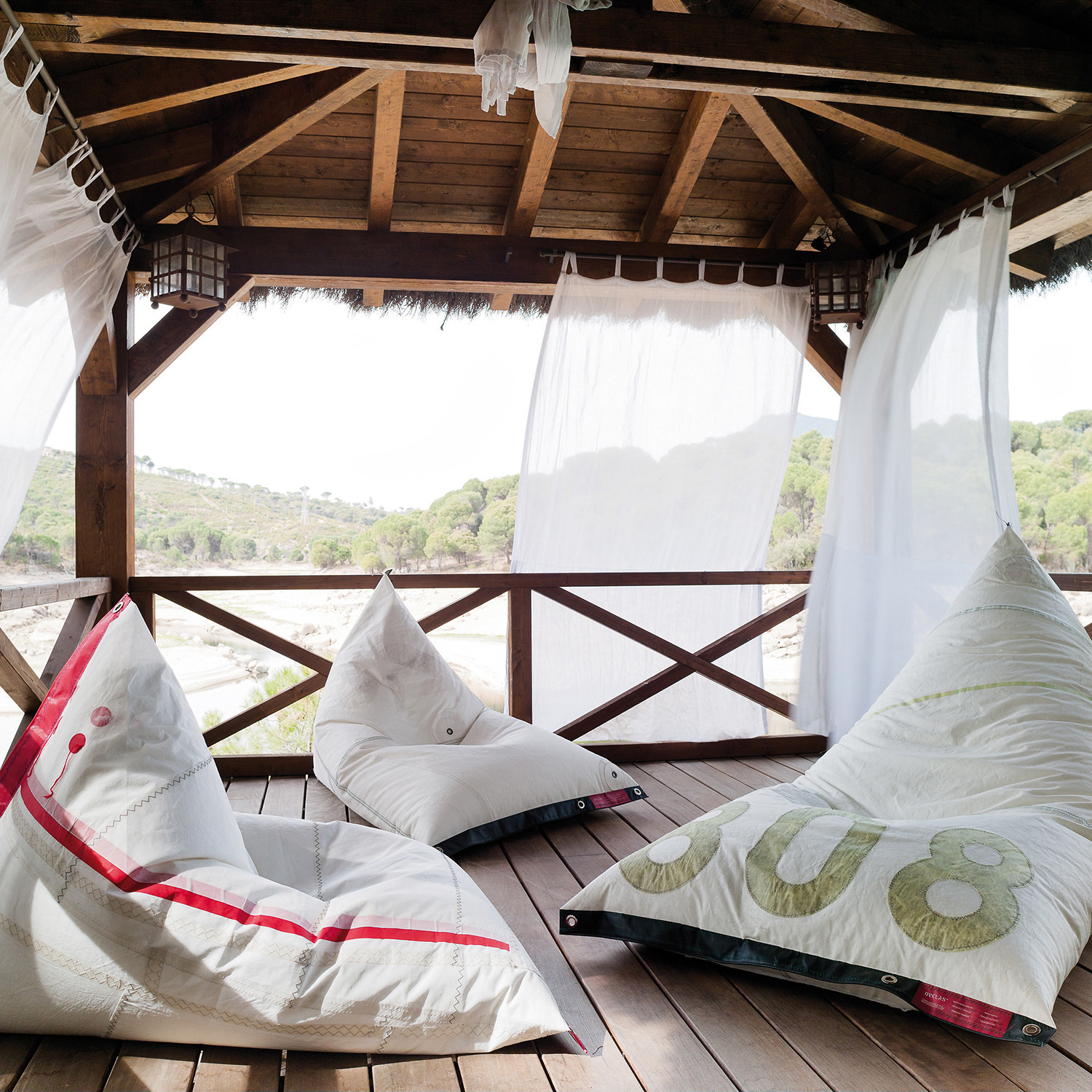 The Genois is an attractive angular seating pouf unlike any other. All limited edition Dvelas pieces originate from a specific sail, with the data of the sail identified on the finished piece. The fabric of the Genois armchair pouf becomes tense when the seat is used, giving the back rigidity, causing the pouf's shape to adapt perfectly to the body, making it extremely comfortable.