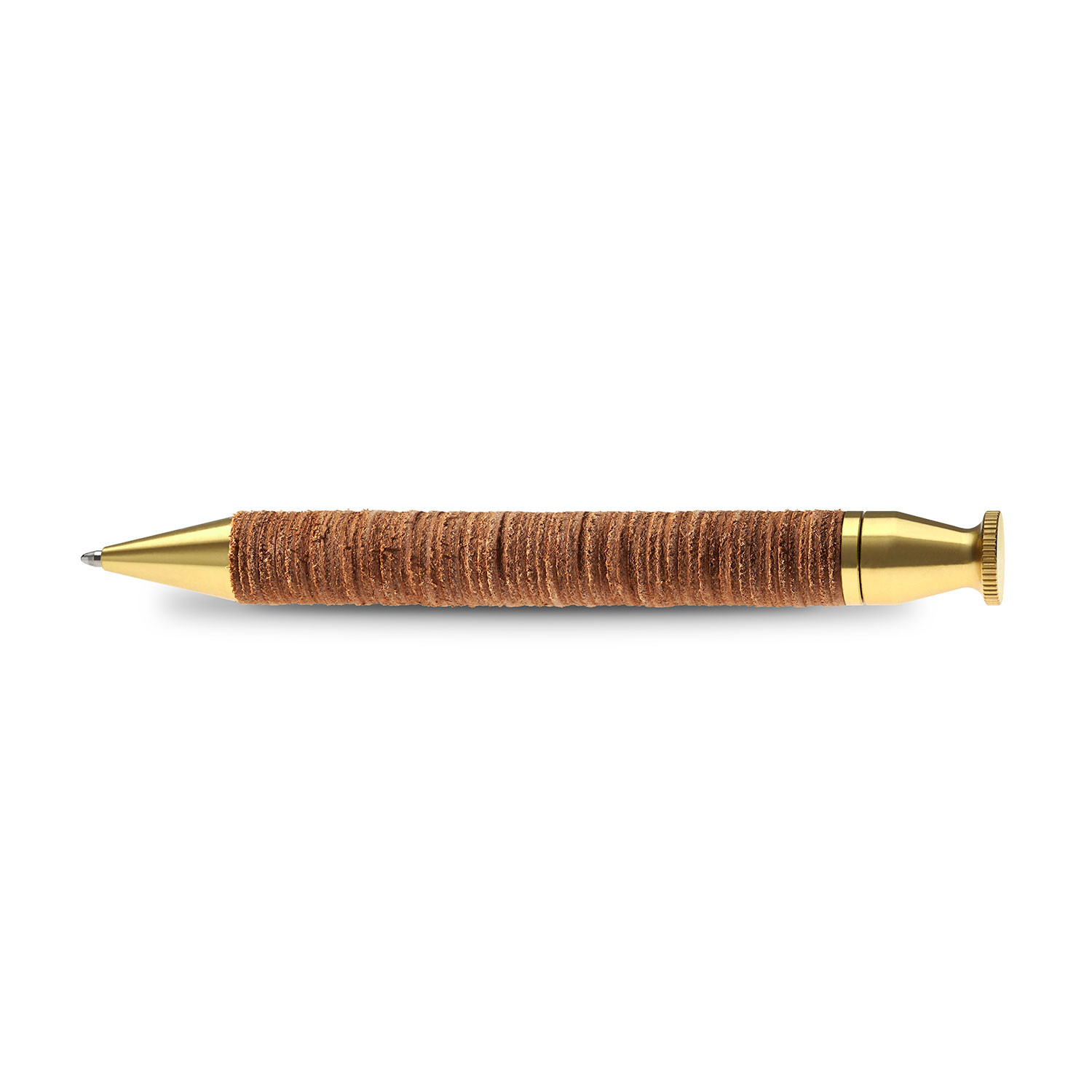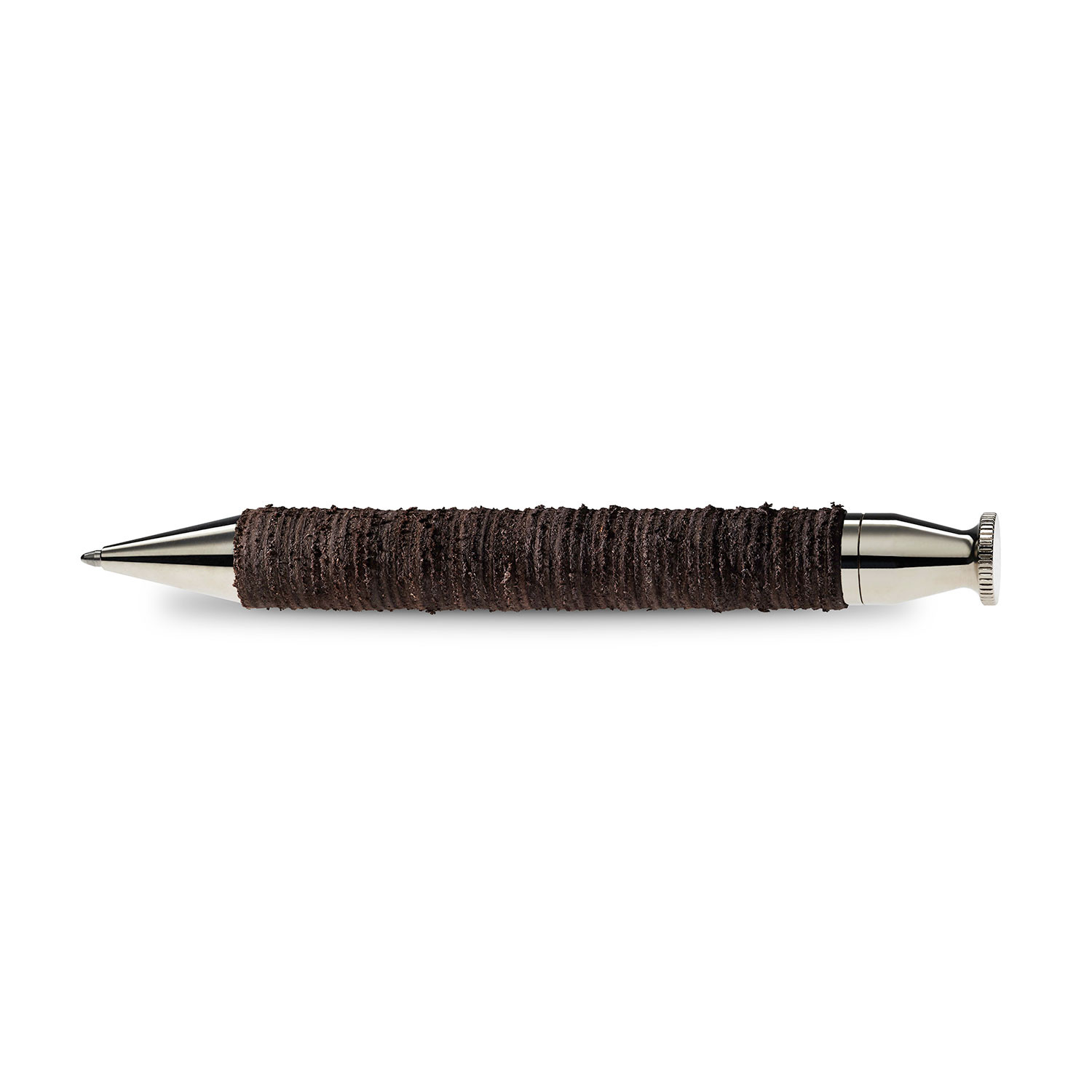 As the name suggests, the King Cuio is a nice chunky ballpoint pen, and it is available with a choice of leather and trim finishes. A solid brass barrel and mechanism give the pen a satisfying weight, while the individually cut leather rings on the barrel ensure the pen has a soft, warm feeling in the hand. Rough leather finish has a rather rustic feel and will develop an individual patina and become more supple over time.