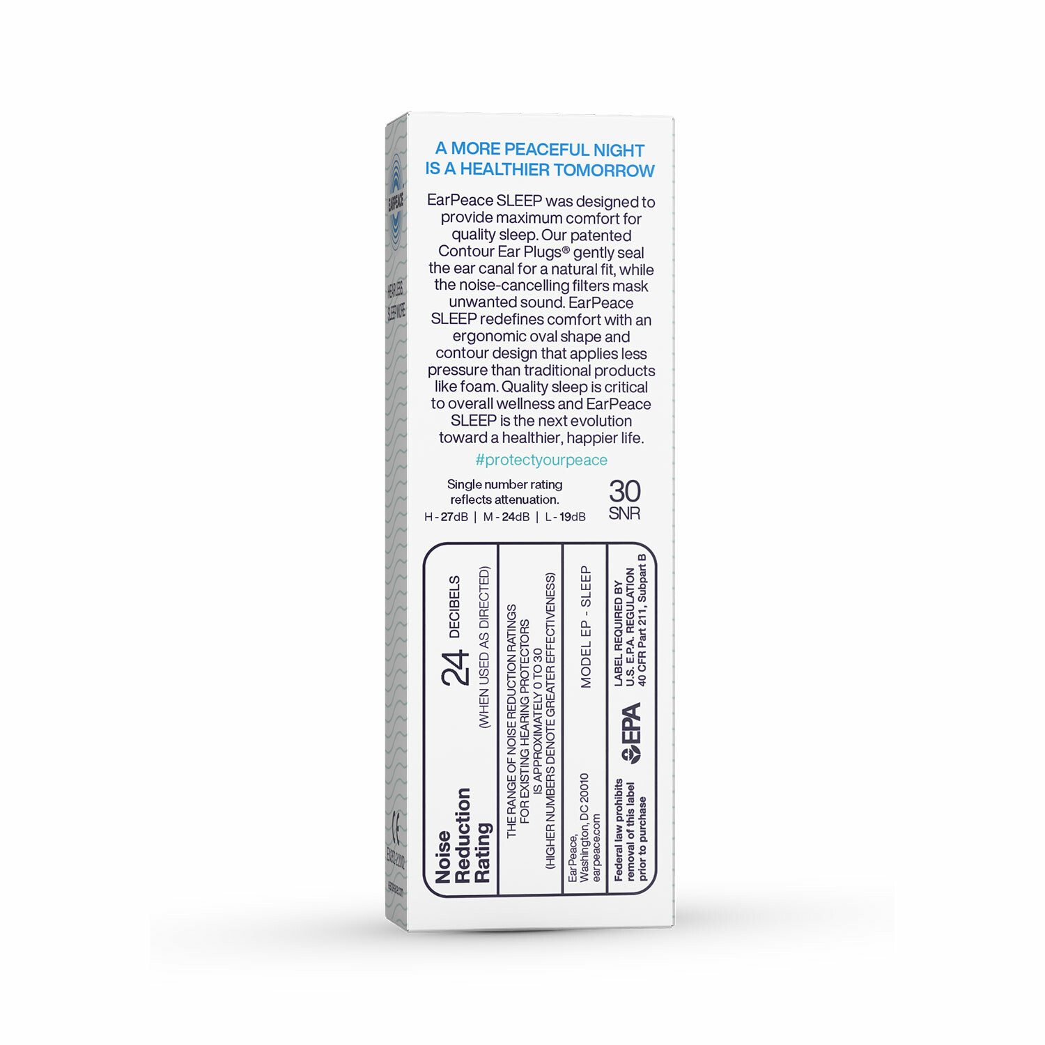 Sleep soundly with EarPeace Sleep. Designed to offer maximum comfort while minimizing unwanted sounds, these earplugs let you recharge your body and mind for the day ahead.
