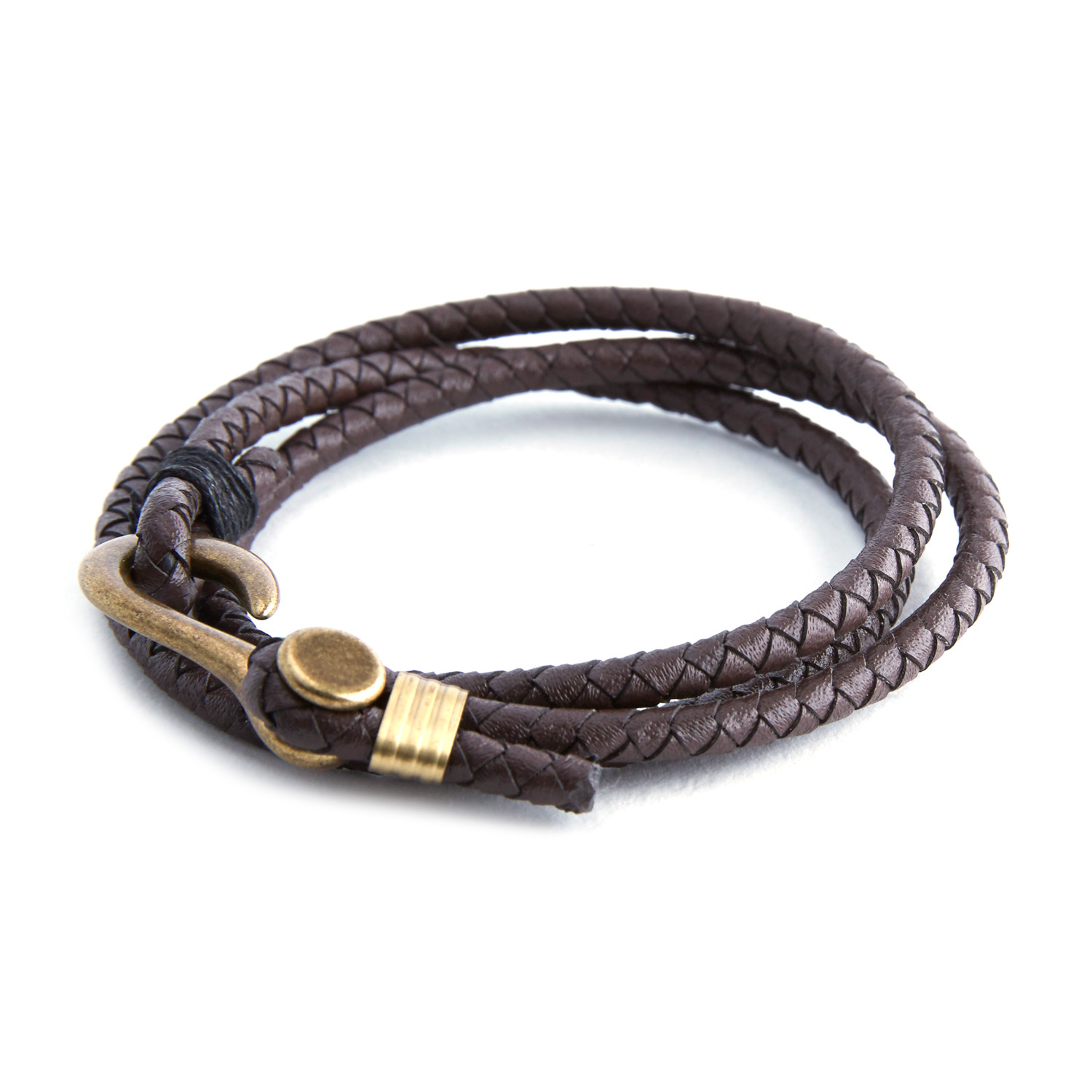 This striking brown and bronze Braided Leather Hook Bracelet is a bold and whimsical addition to any impressive accessory collection, or as a detail to complete any stylish look.