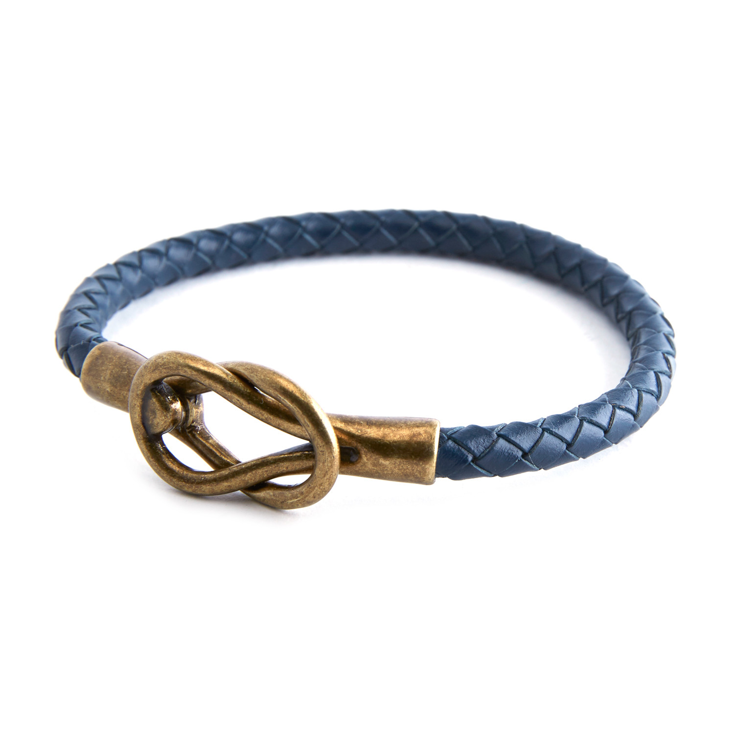 Leather Lock Clasp Bracelet // Blue + Bronze