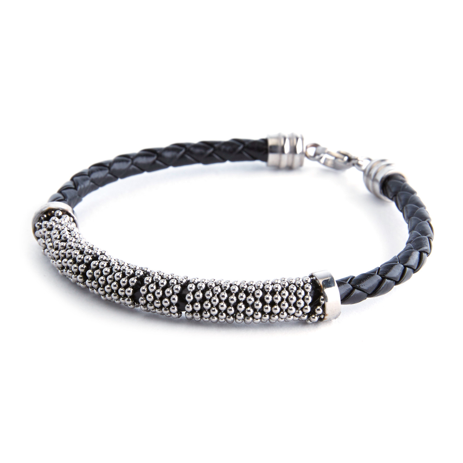 Leather Sting Ray Steel Bracelet // Black + Silver