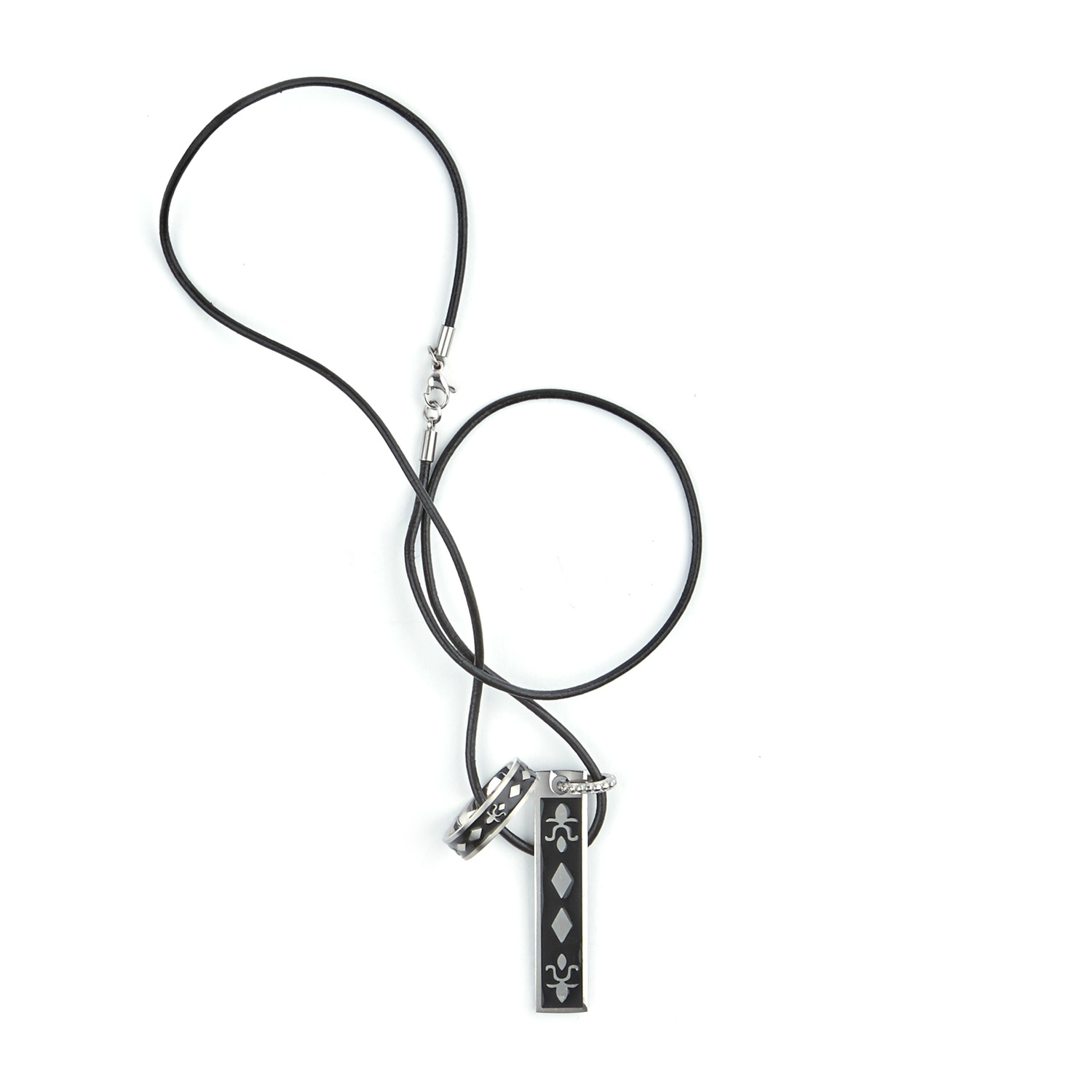 This striking silver and black Rectangle Leather Necklace is a bold and whimsical addition to any impressive accessory collection, or as a detail to complete any stylish look.