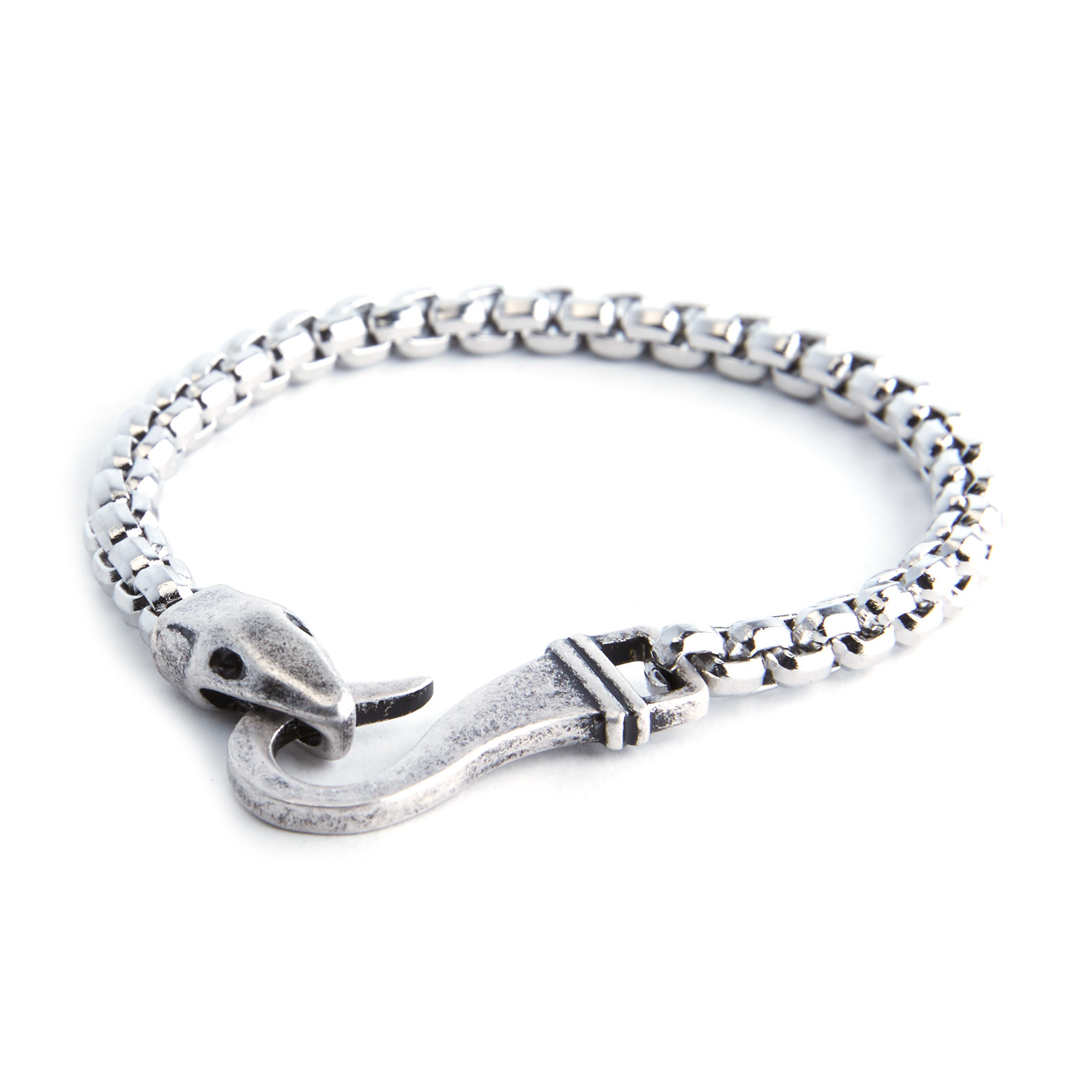 This striking silver Snakehead Bracelet is a bold and whimsical addition to any impressive accessory collection, or as a detail to complete any stylish look.