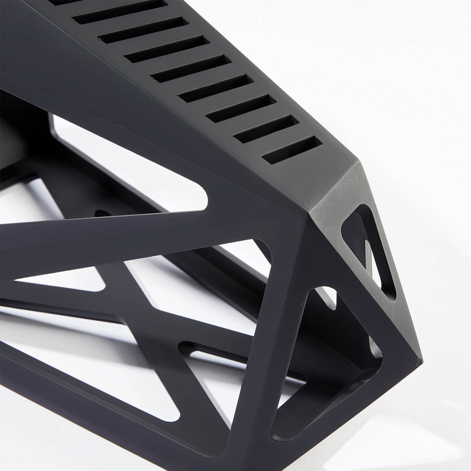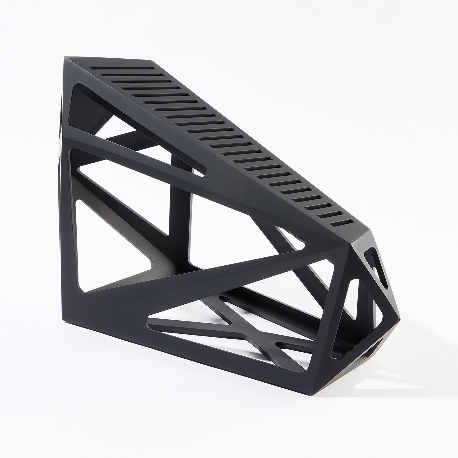 The Black Diamond Magnum Knife Block is a unique, angular knife block designed by Christian Bird to fit seamlessly with Edge of Belgravia’s avant-garde style. Futuristic in its conception, the clean lines bring to mind the angles of a rough cut diamond, while its architectural quality reflects the finely angled handles of Edge of Belgravia’s signature range of knives.