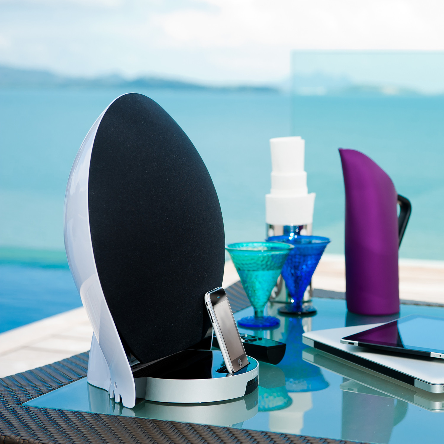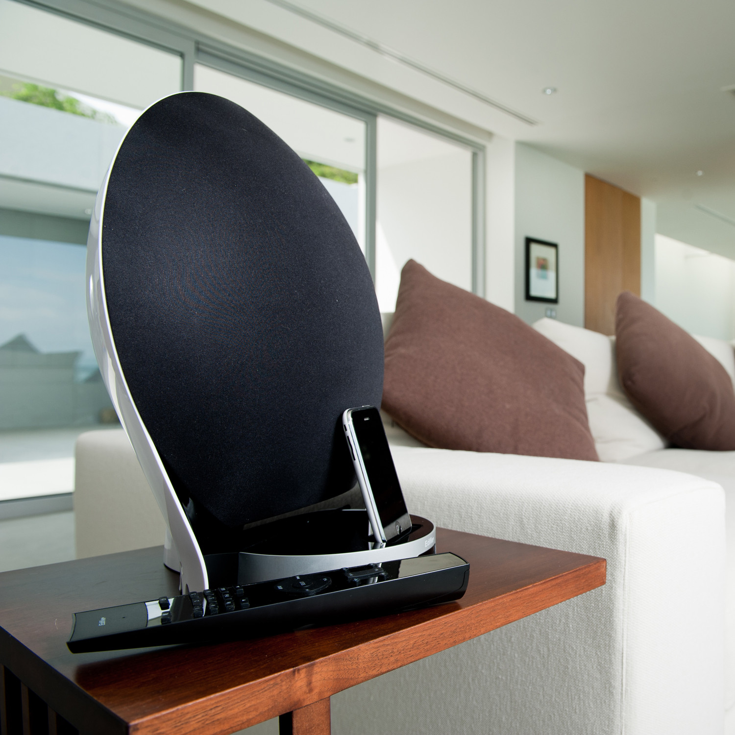 The Luna5 Encore is an award-winning 5-driver speaker system that combines smooth curves with an avant-garde design. This docking station for iPhone and iPod also includes FM radio and auxiliary inputs for additional audio sources. This item has a unique floating dock that reduces vibrations and unwanted resonance while you're jamming to your favorite tunes.