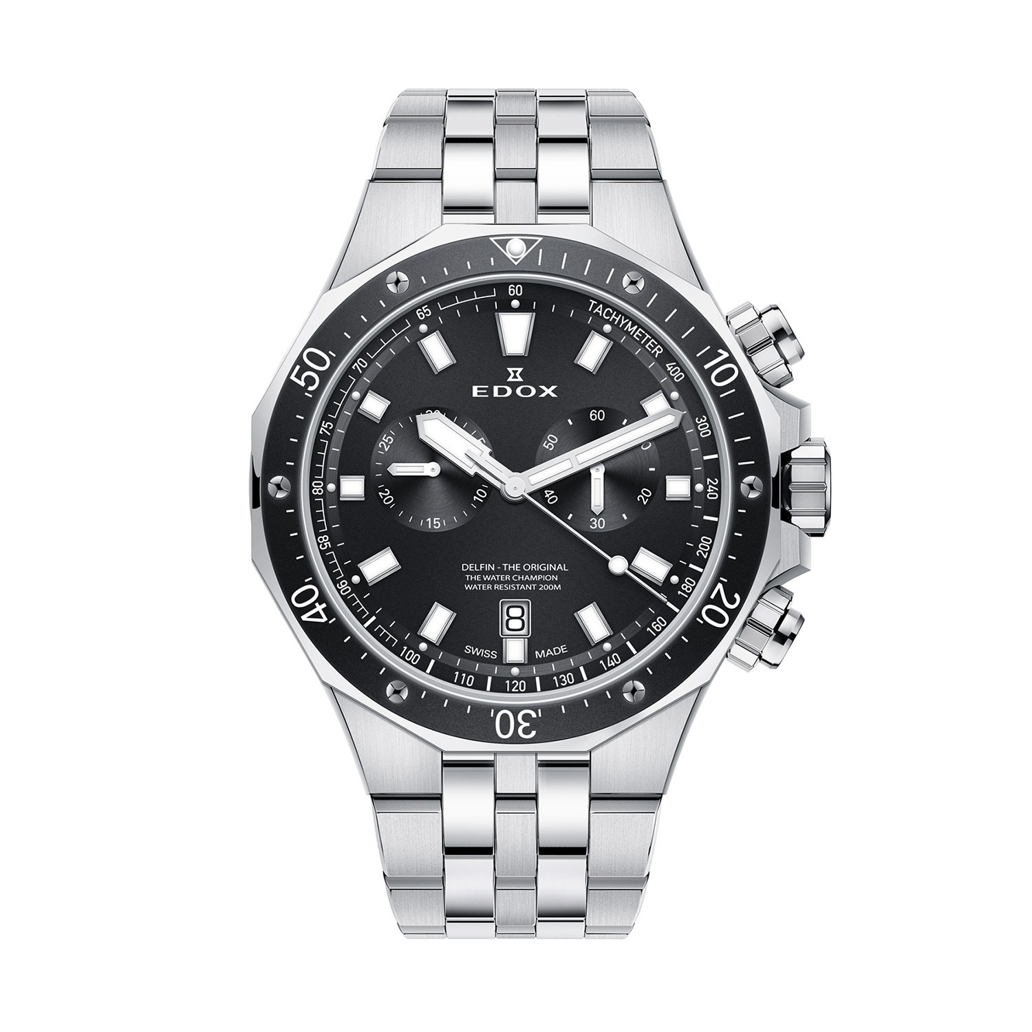 The Delfin was Edox's best selling collection last year. This year they have taken it to a new level of stand-out Swiss watchmaking luxury. The new Delfin Chronograph collection comes with a stationary bezel, tachymeter scale, and a double caseback to ensure extra protection. The Delfin Chronograph also comes a luminescent hands for night viewing and an anti-reflective Sapphire Crystal which enhances the dial and makes it easier to read.