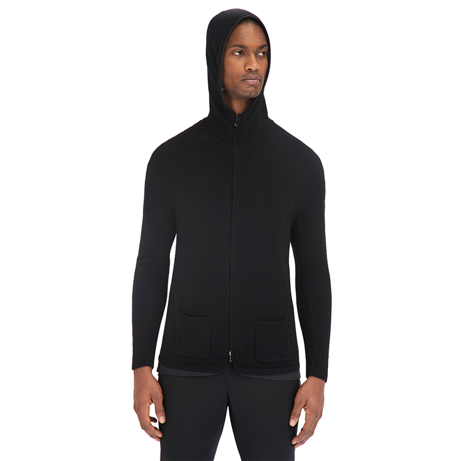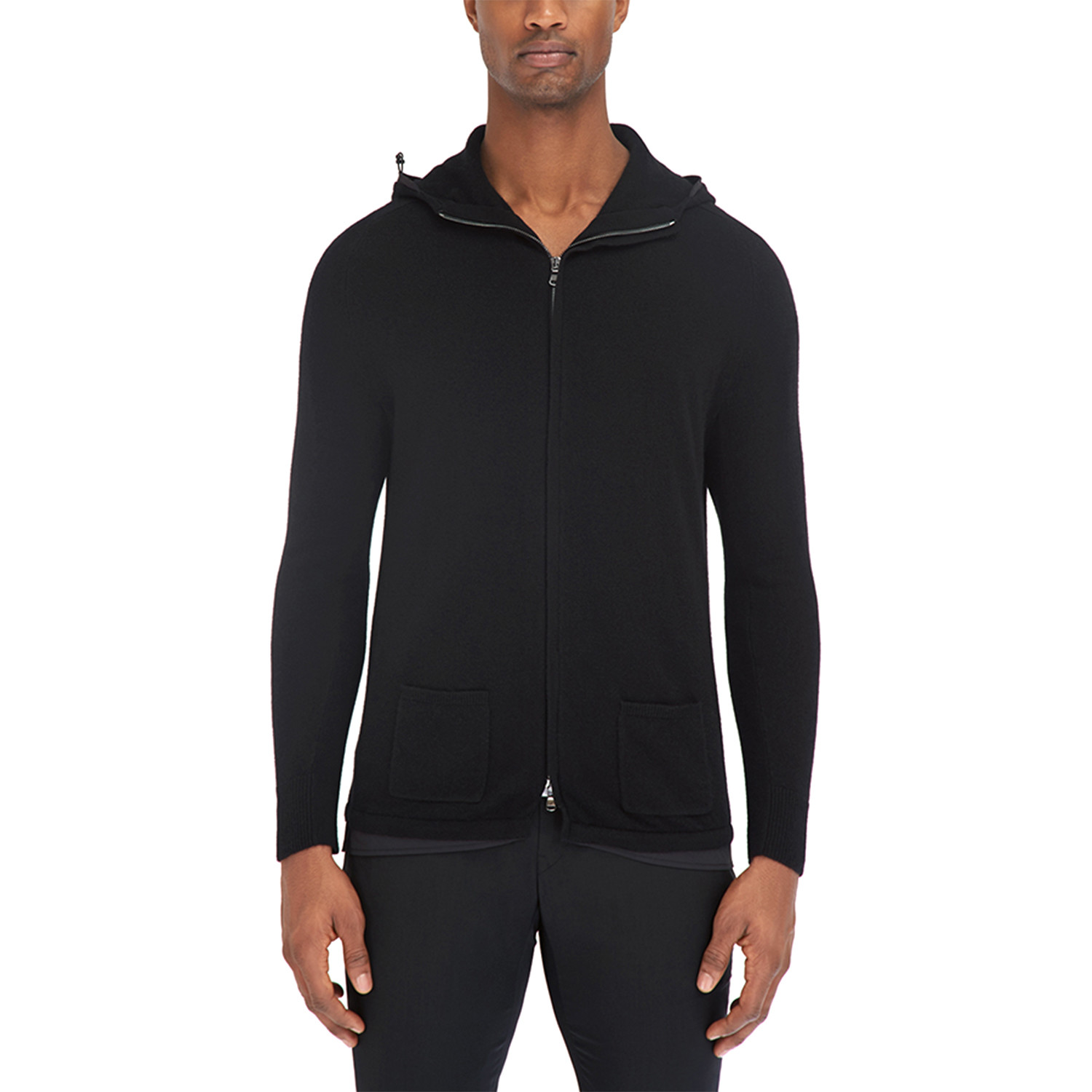 Swank Hooded Zip Front Sweater // Black