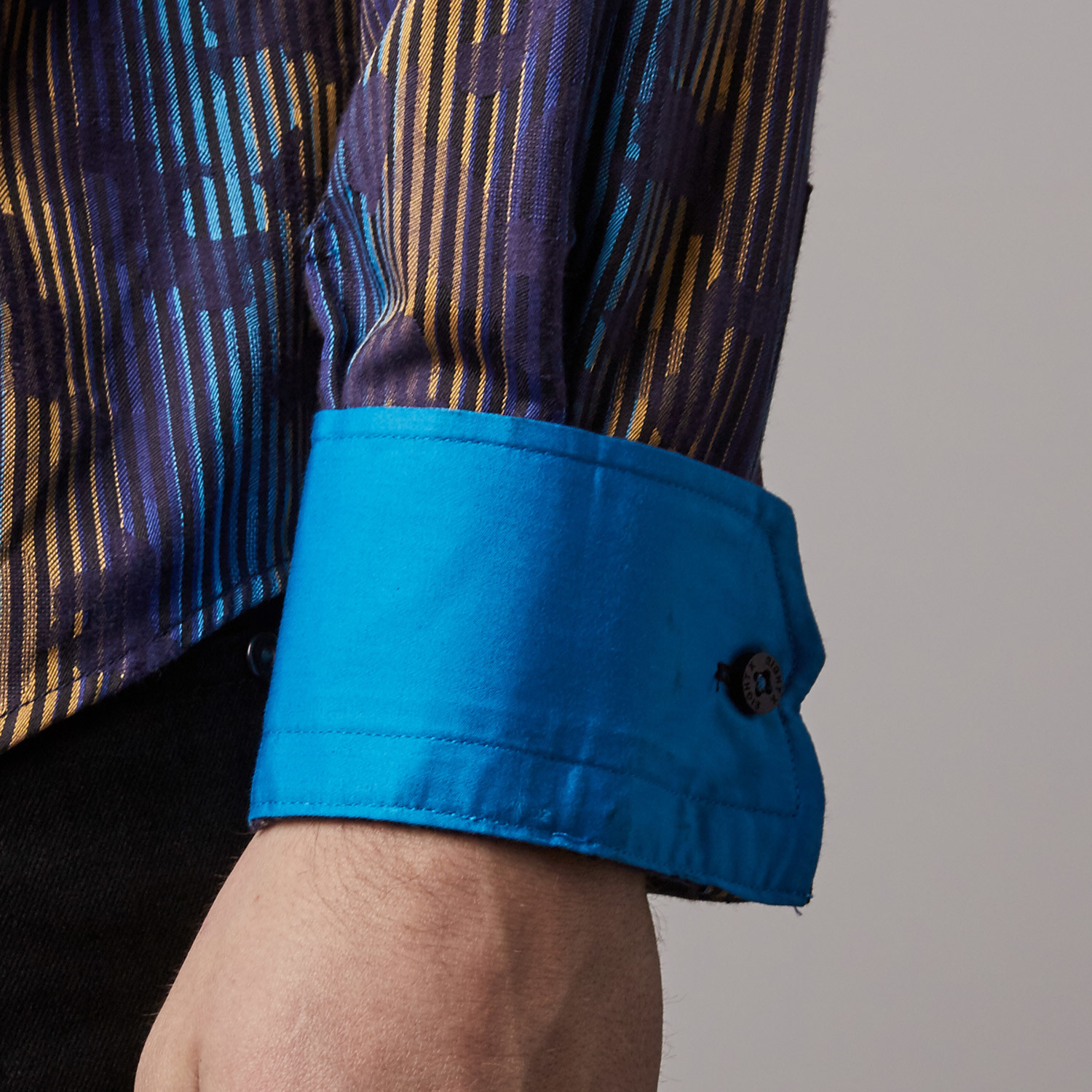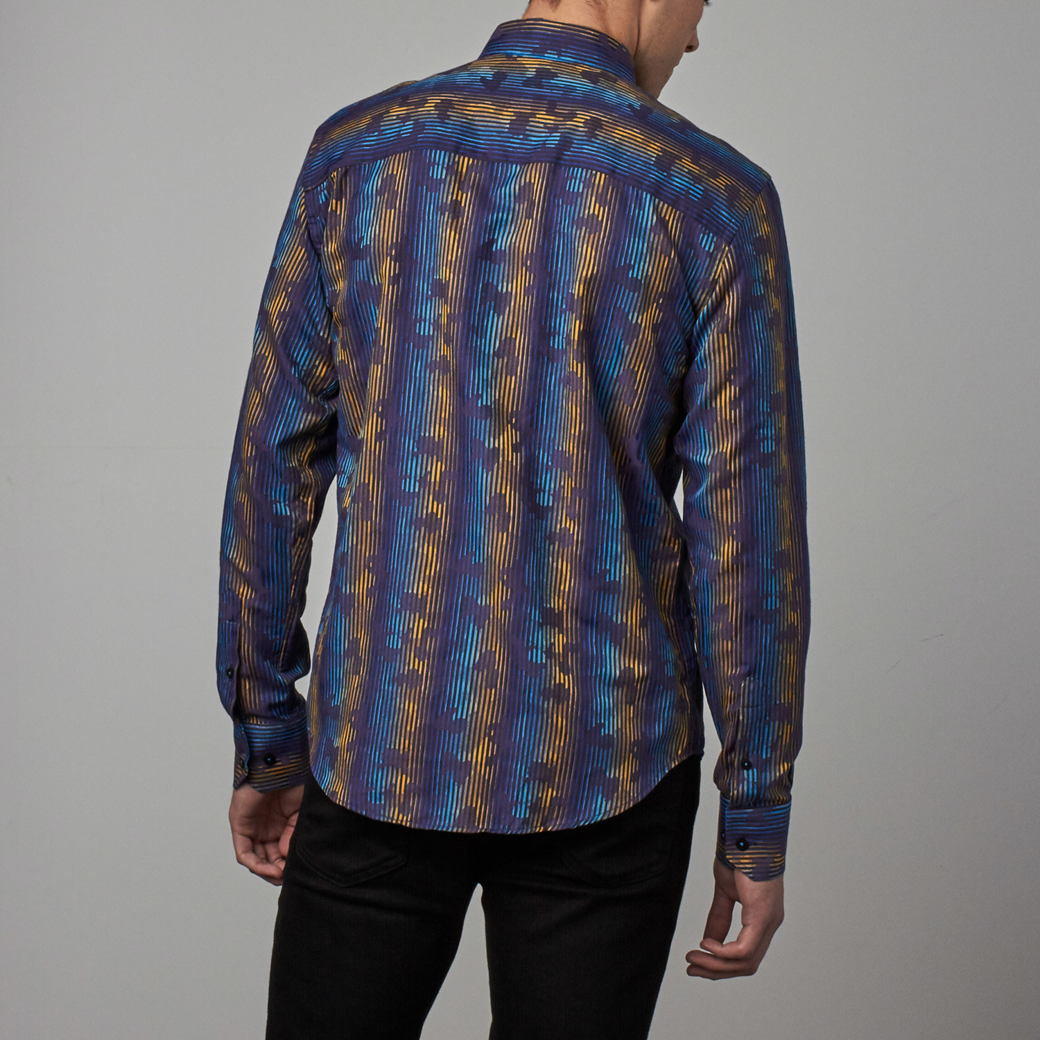 Jacquard Button-Up // Navy + Yellow