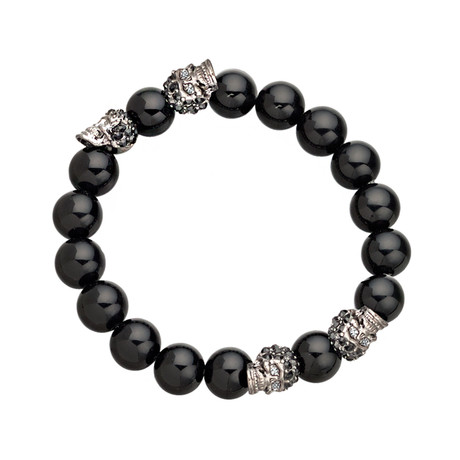 Be your most fearless self with this stepped-up bead bracelet. Bringing luxury to your wrist's littlest detail, this Gunmetal Skull + Onyx iteration of eklexic's classic men's bead bracelet style features fantastic extras. From its gunmetal Swarovski-crystal encrusted skull details to its polished onyx beads, it's the perfect accessory to pair with jeans and a tee for some sexy yet casual style.