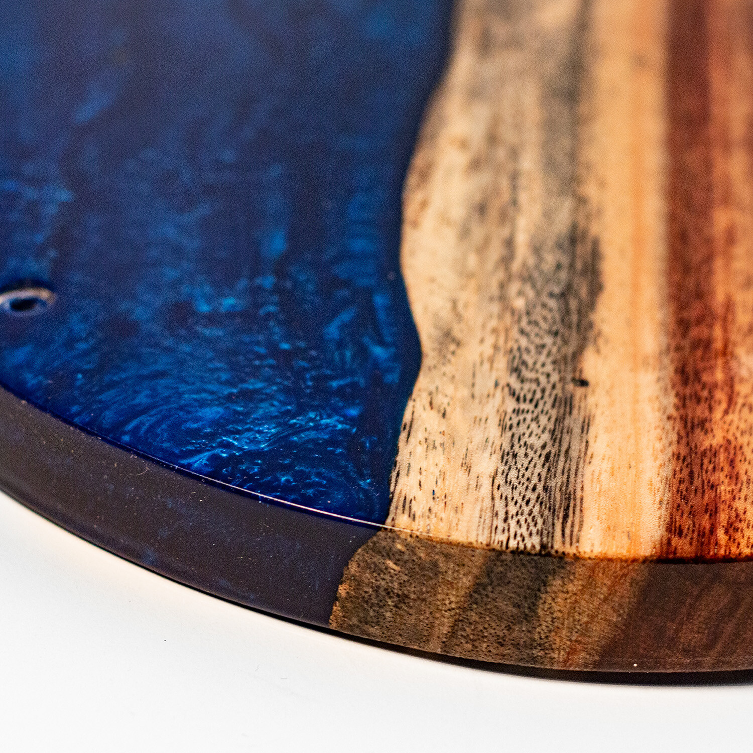 Live Edge Acacia Wood Resin Hook + Ring // River Blue with Pearl