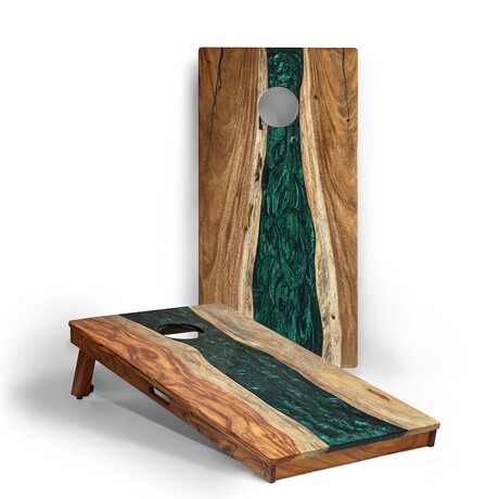 Live Edge Resin Cornhole Boards // Emerald Green with Pearl