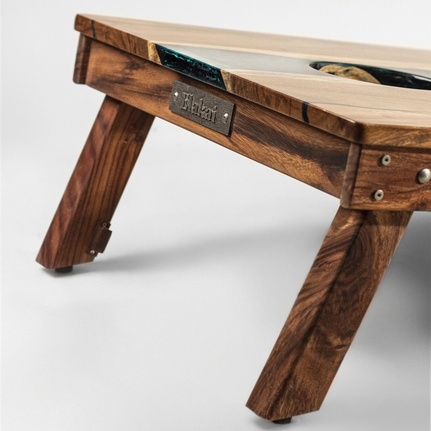 Live Edge Acacia Wood With Epoxy Resin And Stainless Steel Hardware