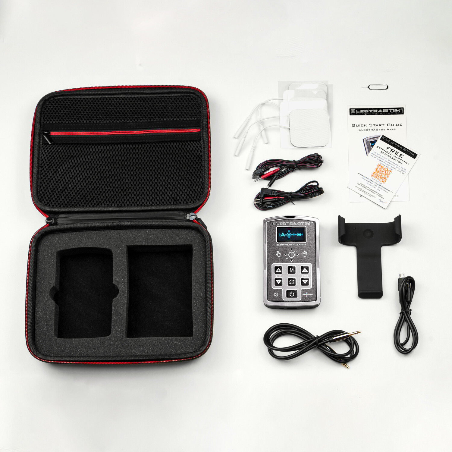 AXIS by ElectraStim is a high-spec dual output electro stimulator with multiple input sensors for a truly customizable e-stim experience. AXIS gives you the freedom to control electro play, your way. Featuring dual isolated outputs—each of which can be controlled independently—you’ll be able to connect 2 bipolar or 4 unipolar toys at any one time. Control it all with the tactile buttons, a flick of your wrist, a wave of your hand, the sound of your voice, or even the proximity of your partner’s body. The only limit is your imagination!