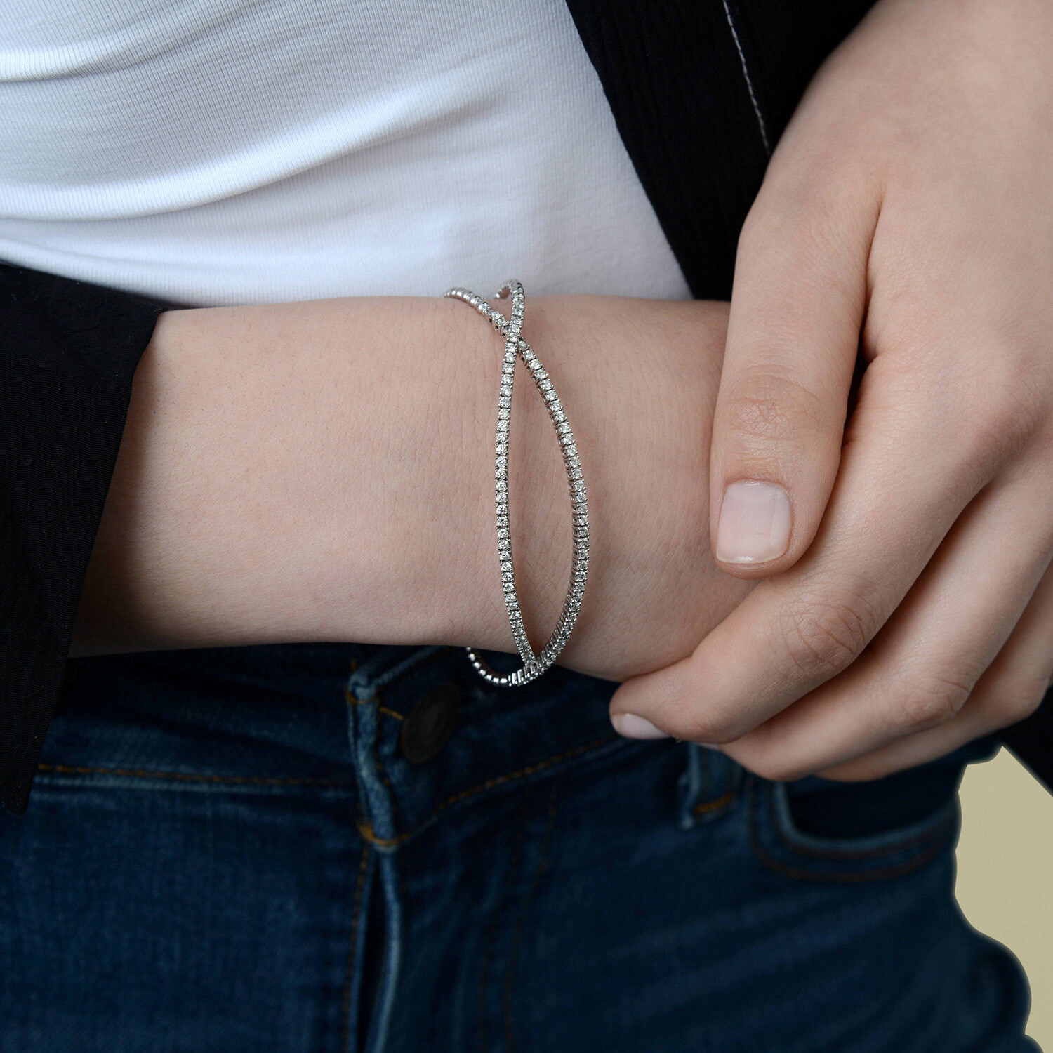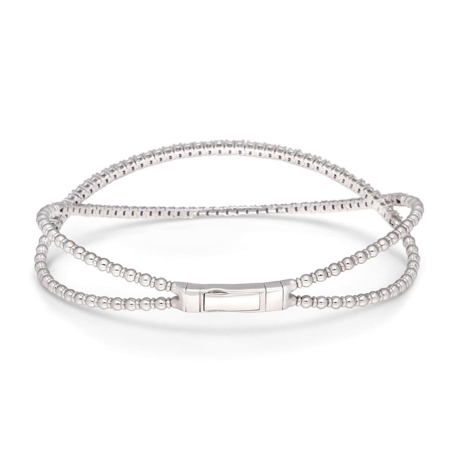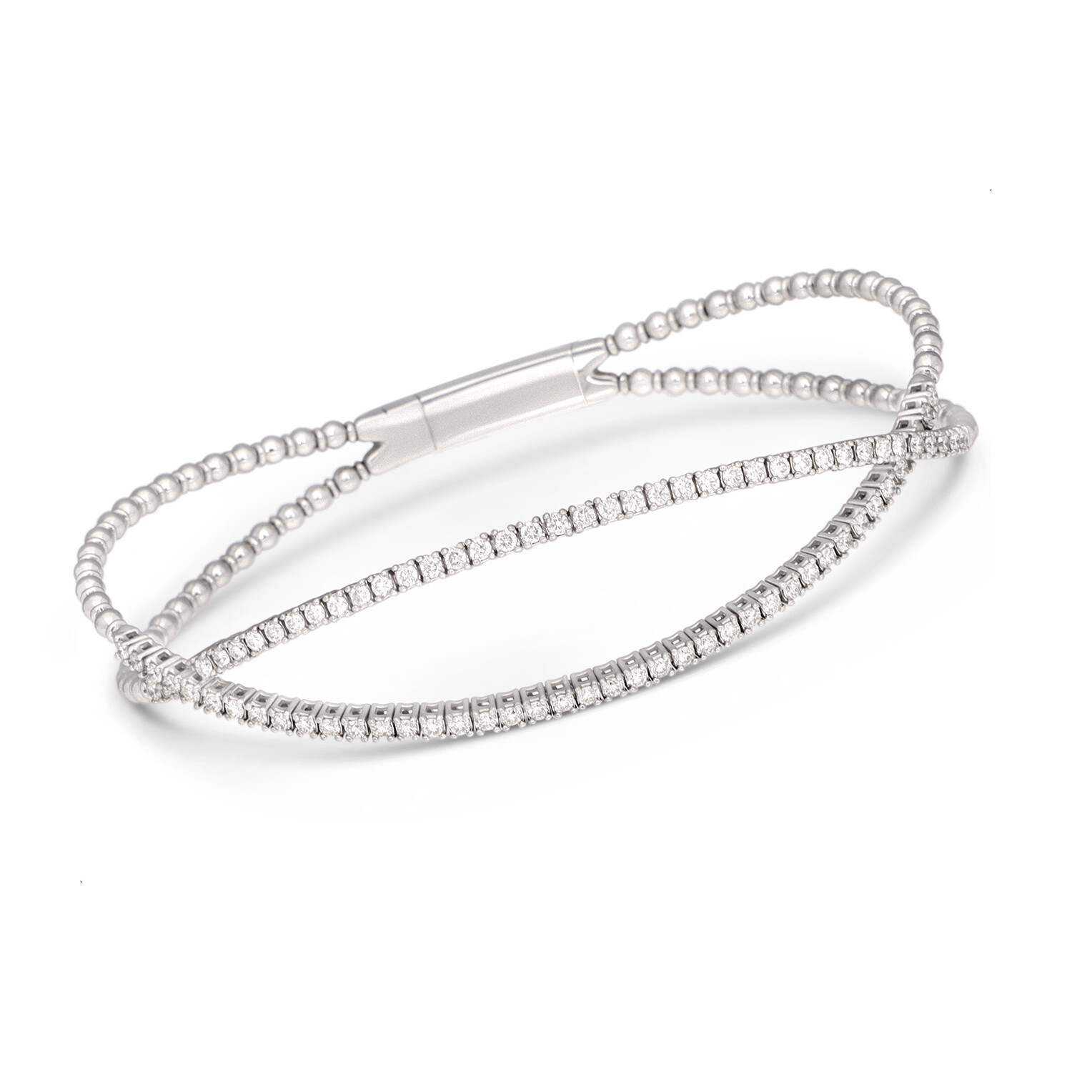 Tresorra // 18K White Gold Diamond Bangle Bracelet // 6.75" // New