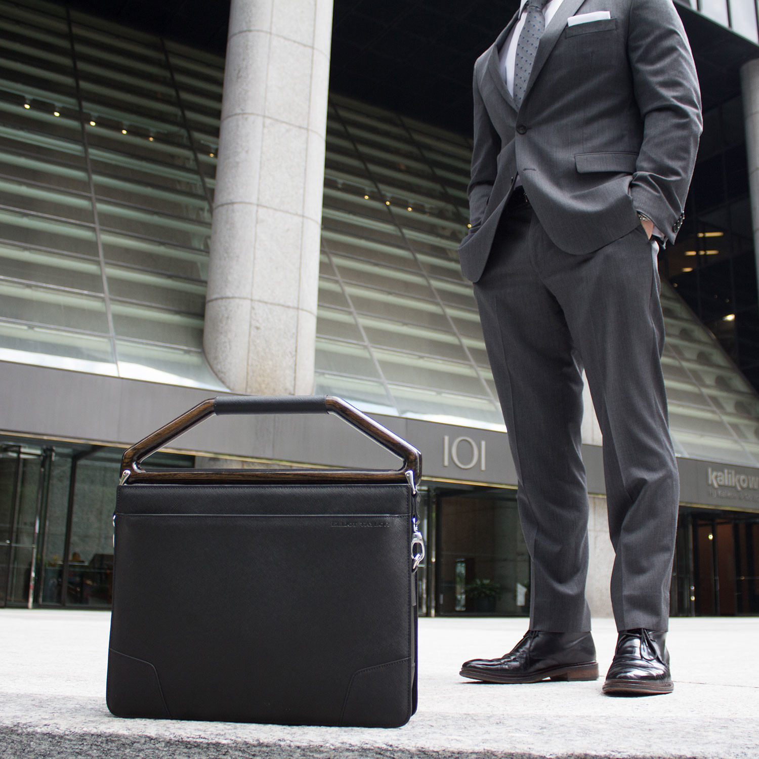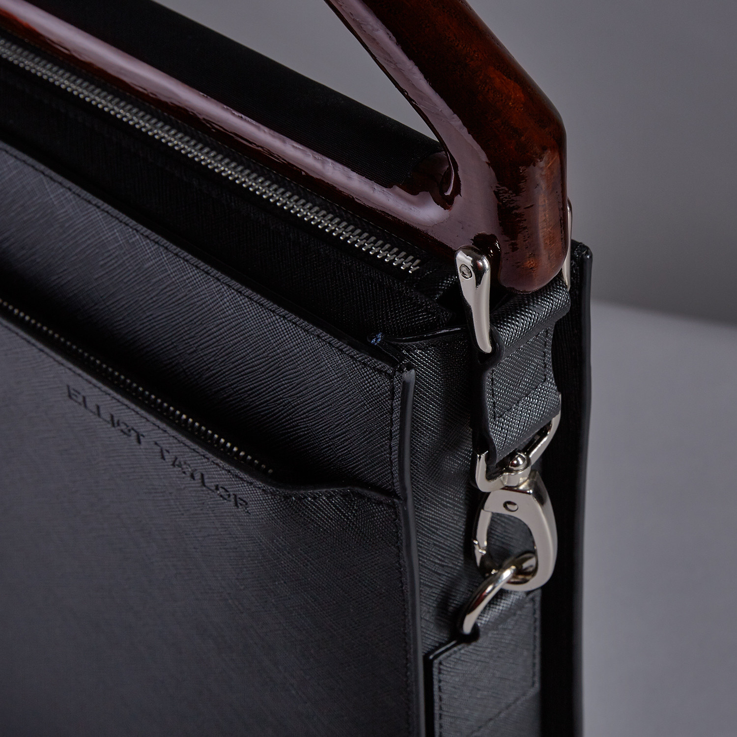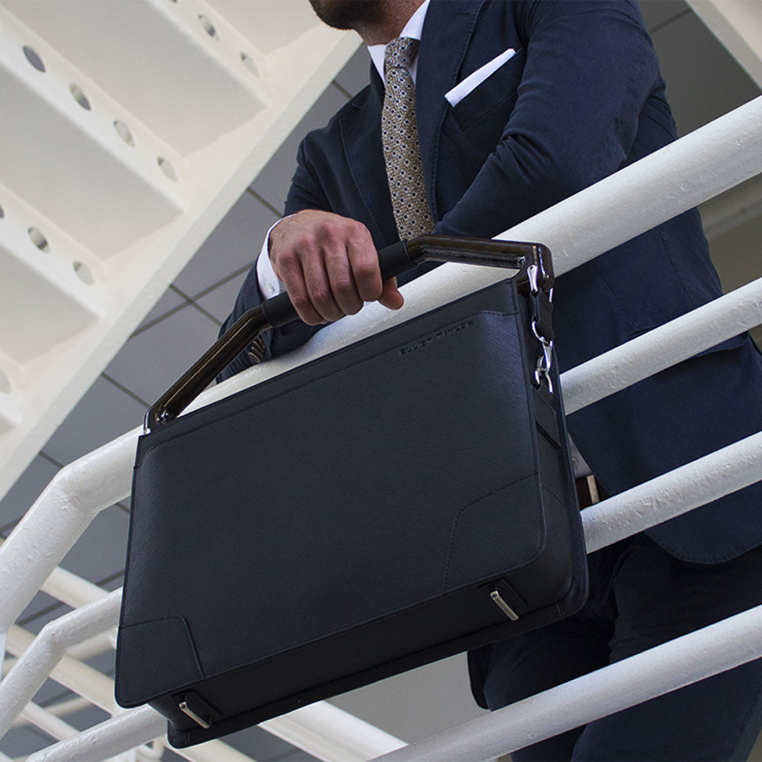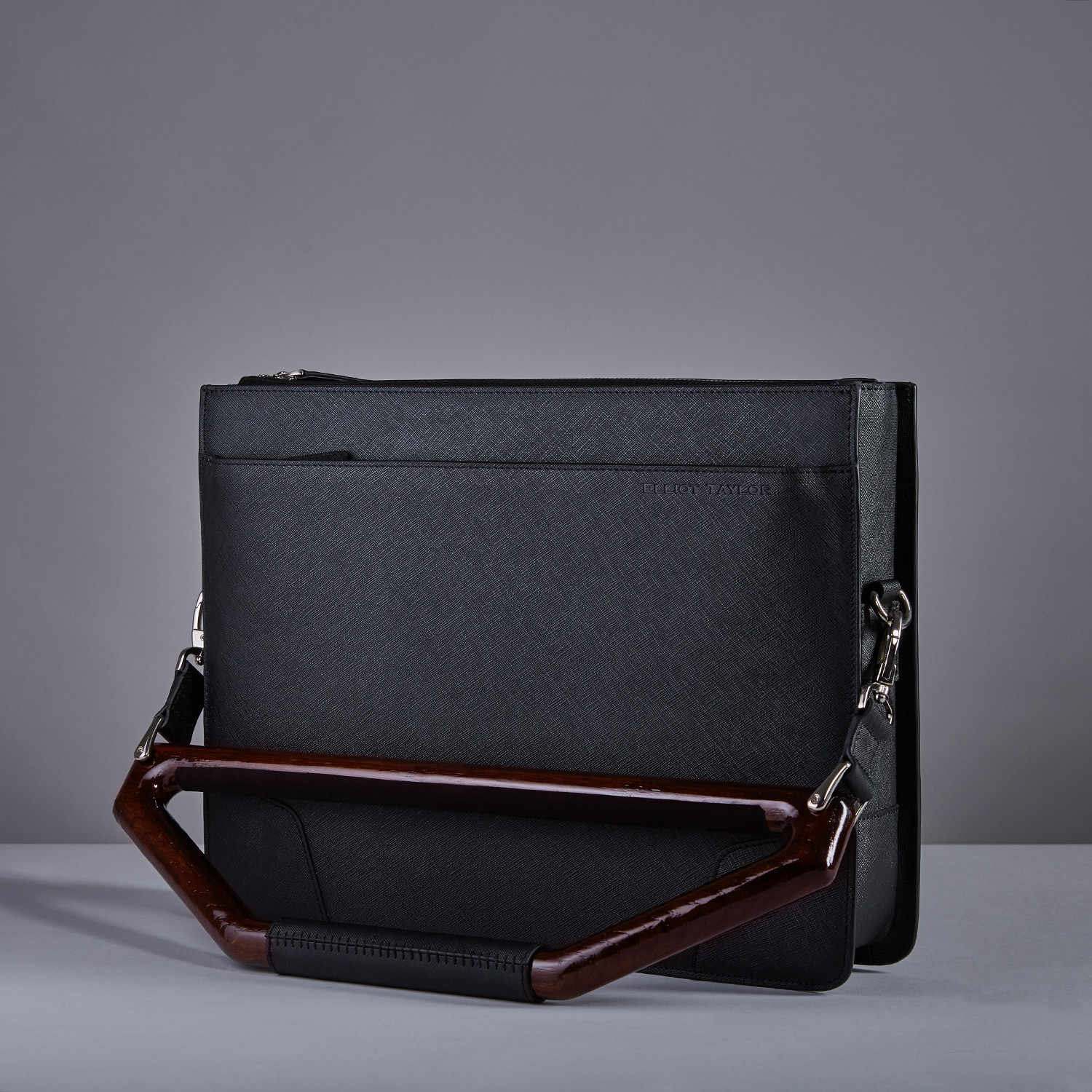 What truly makes the Briefcase stand out is the VALET Handle™, ELLIOT TAYLOR's trademarked handle especially designed for suited-up commuters who are dressed-for-success, business travelers, and today’s modern movers and shakers. The VALET Handle™ provides an “ergonomic extra hand” with a dedicated space ingeniously designed so you can strategically drape your jacket in place, for an always fresh, “just pressed,” buttoned-up appearance.