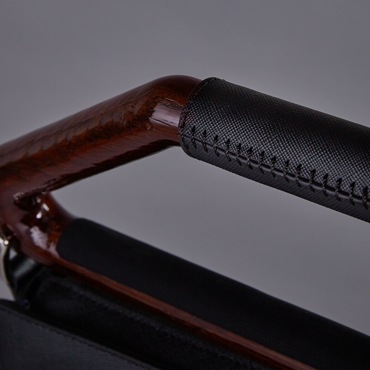 The handle is cut from a solid piece of American white oak — without seams, screws or glue — and outfitted with a leather handle to guarantee strength and reliability of the highest order. The dimensions of the base are perfectly calibrated for ideal jacket transport and is slide-resistant.