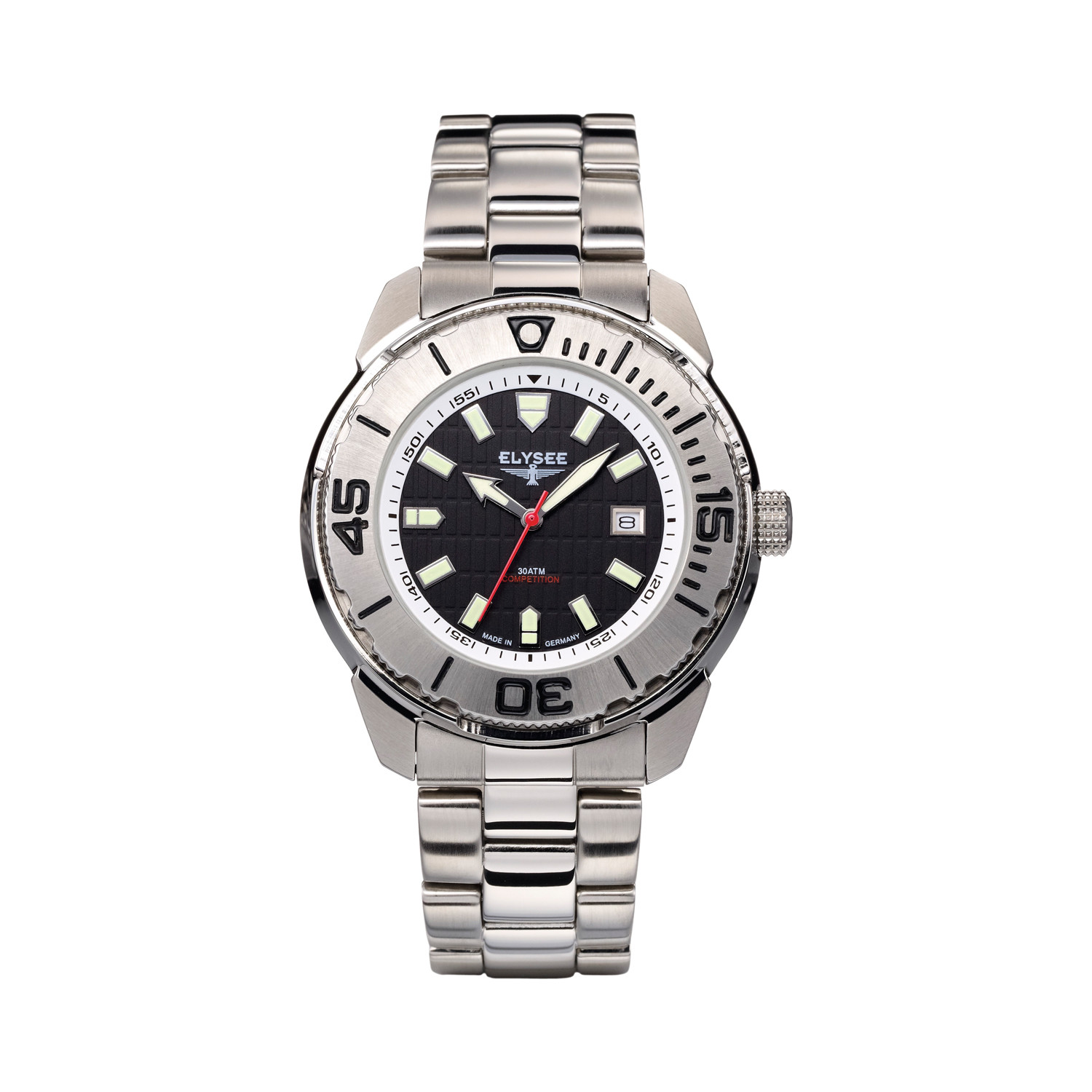 The Endurance watch is one of the highlights of the Competition Line with water resistance of 30ATM and a solid stainless steel wrist strap. The numbers on the dial are clear and large to enable easy reading in any situation. The extra small lens is necessary for diving, in order to withstand high water pressure.