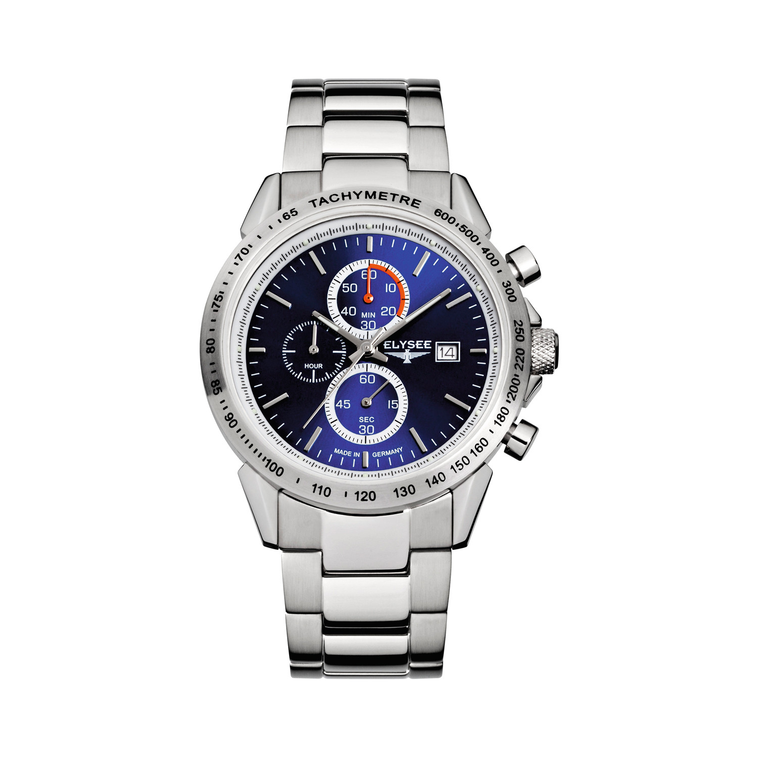 A very classy chronograph from Elysee, Arrow provides beside its beautiful appearance also a stop function and a date display. The case is polished on the side and the top ring is made from high-quality stainless steel. The style continues at the watch band. The crown is bolted and decorated with the Elysee logo, and this model is even waterproof to 10 ATM.