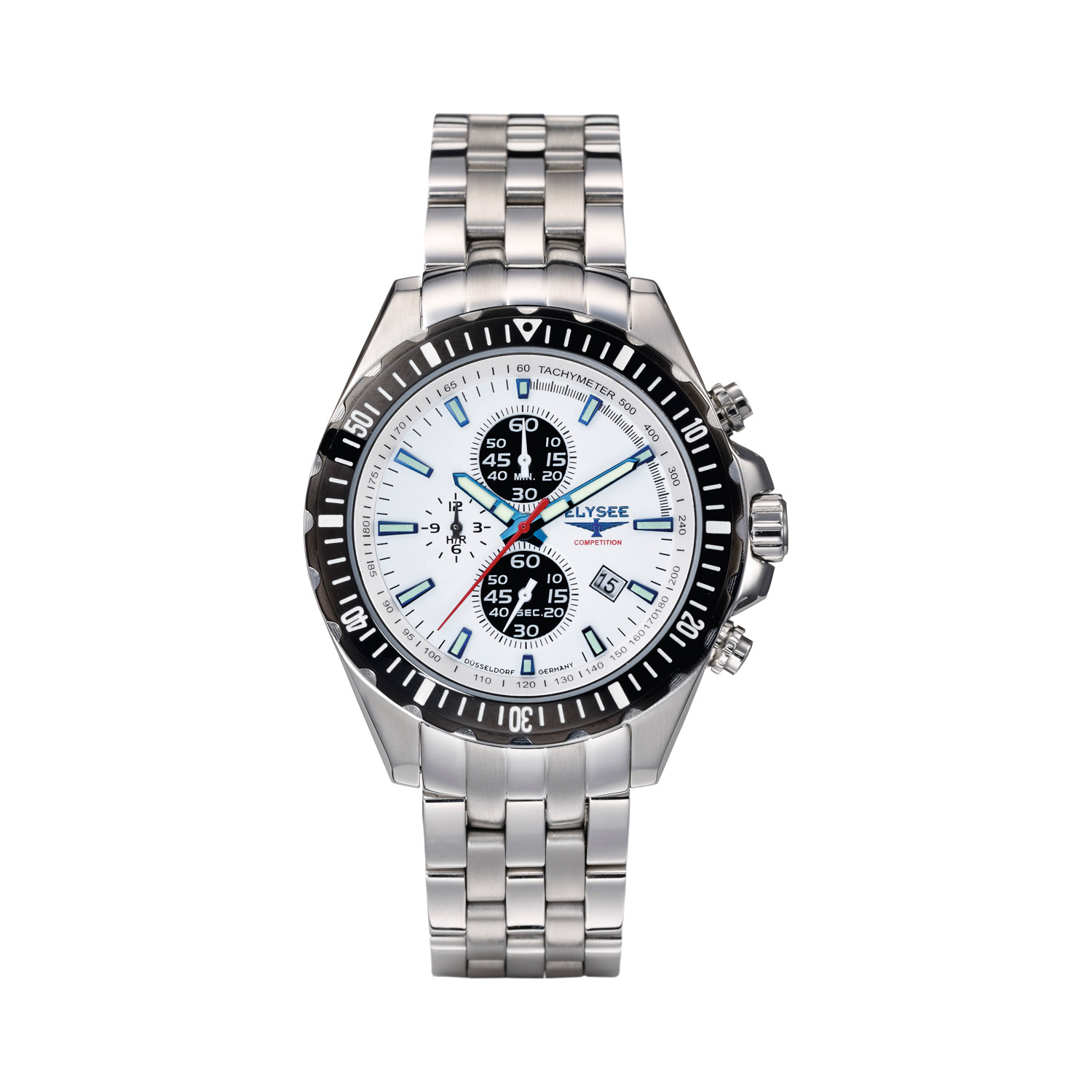 Hot Lane is a highlight of Elysee's Competition Collection. This athletic model comes with many features, which are all perfectly planned for the sportive everyday life. The case, made out of stainless steel, contains a high precise chronograph movement with stop function for minutes and seconds.