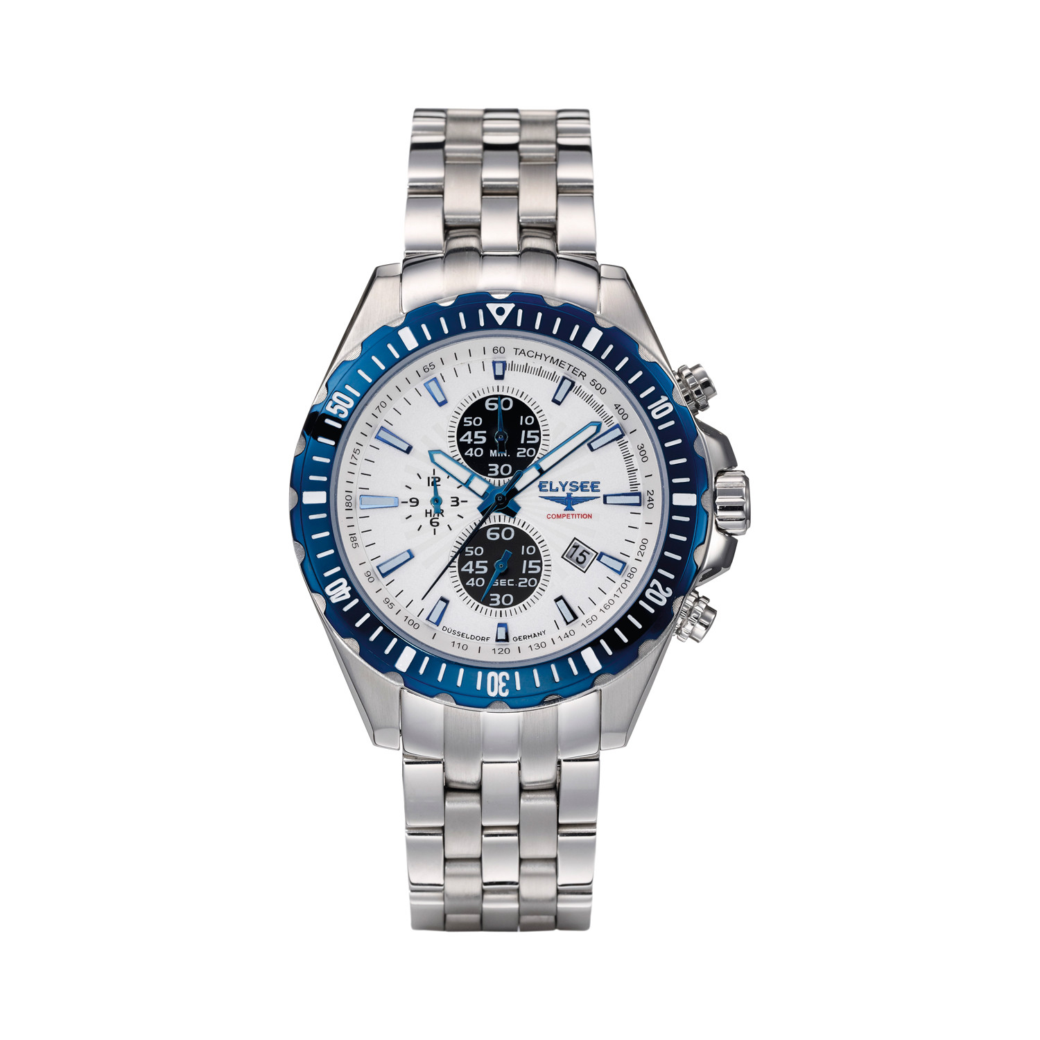 Hot Lane is a highlight of Elysee's Competition Collection. This athletic model comes with many features, which are all perfectly planned for the sportive everyday life. The case, made out of stainless steel, contains a high precise chronograph movement with stop function for minutes and seconds.