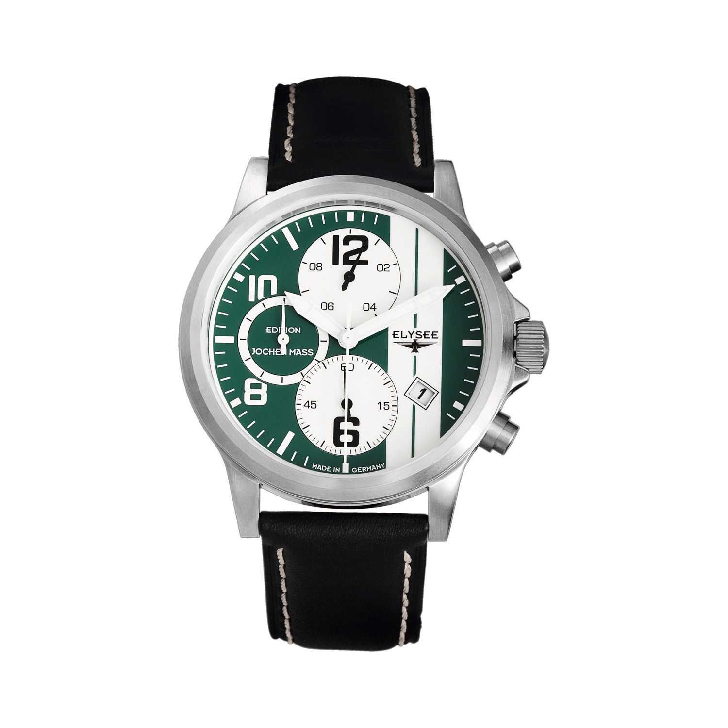 Unmistakeable design, unique racing-inspired face — the Paddock is a ubiquitous accessory. Each model bears immediately recognizable white vertical stripes on the dial. The engine is a high-quality chronograph movement with date and stopwatch function.