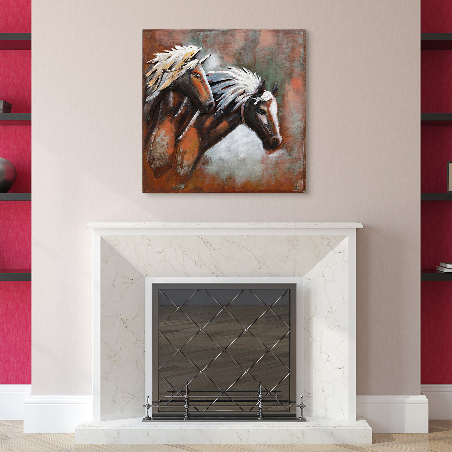 Horses // Mixed Media Iron Hand Painted Dimensional Wall Art