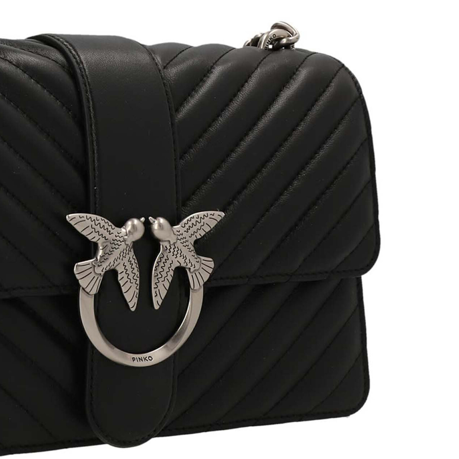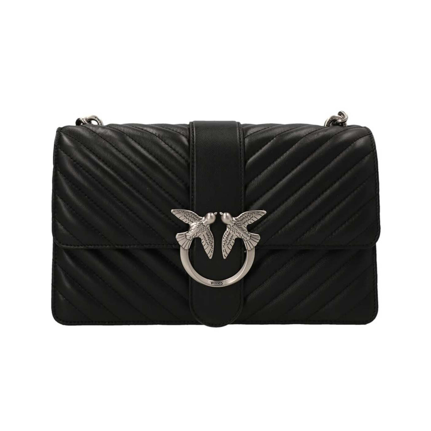 PINKO // Logo-Plaque Crossbody Bag // Black + Silver