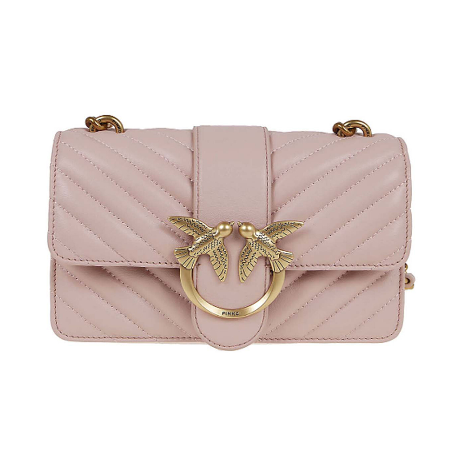 PINKO // Logo-Plaque Quilted Shoulder Bag // Pink + Gold
