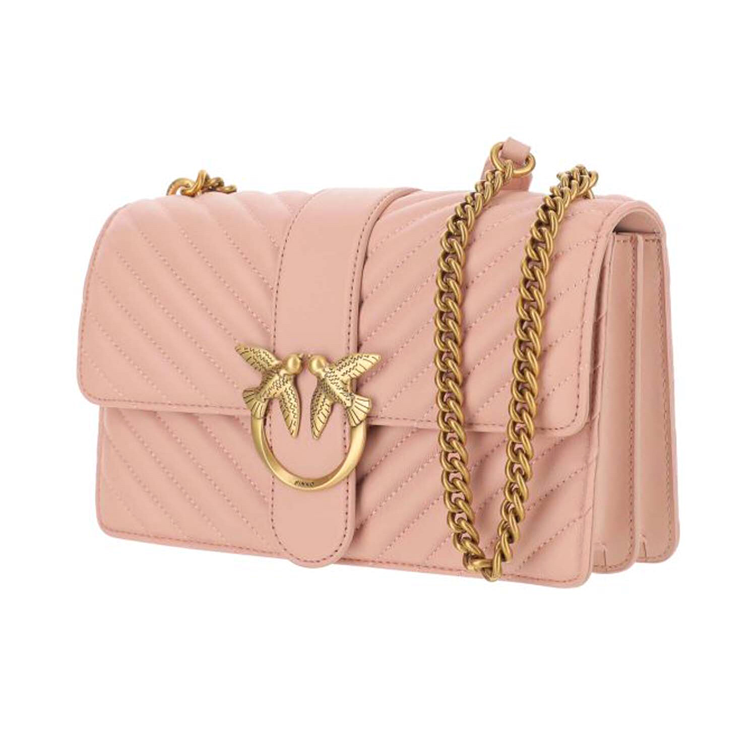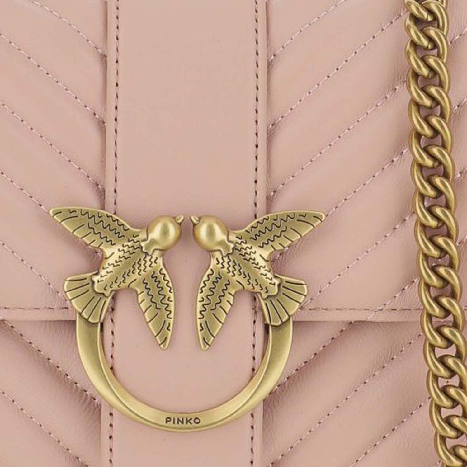 PINKO // Love Classic Chevron Leather Crossbody Bag // Pink + Gold