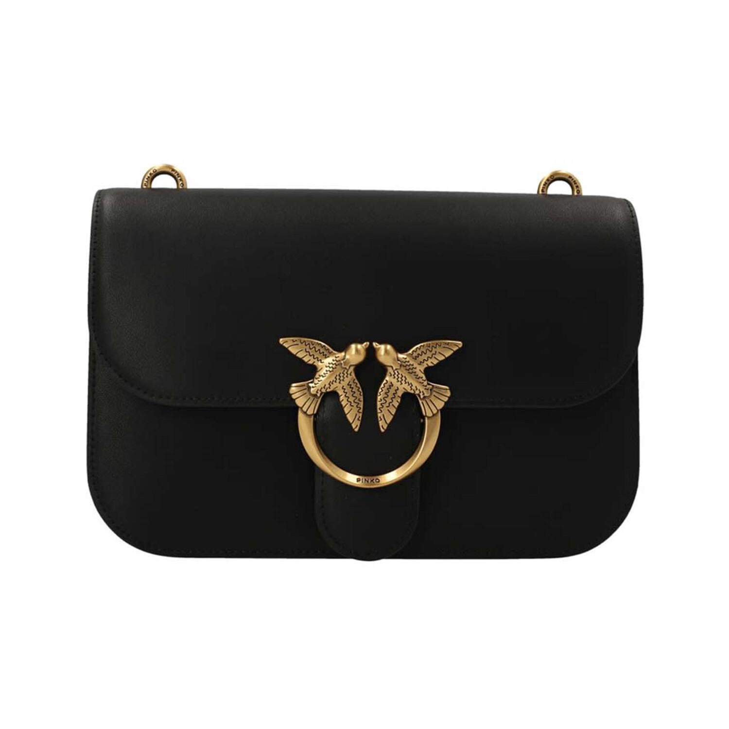 PINKO // Love Crossbody Leather Bag // Black + Gold