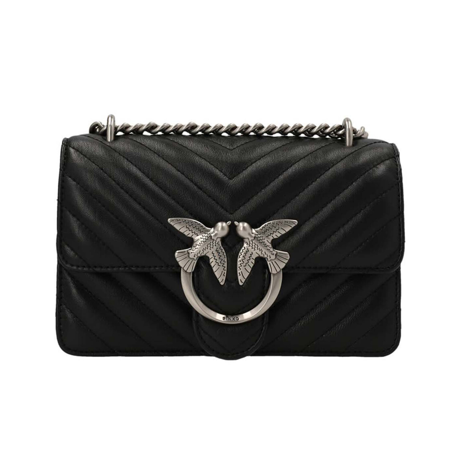 PINKO // Love Mini Icon Chevron Handbag // Black + Silver
