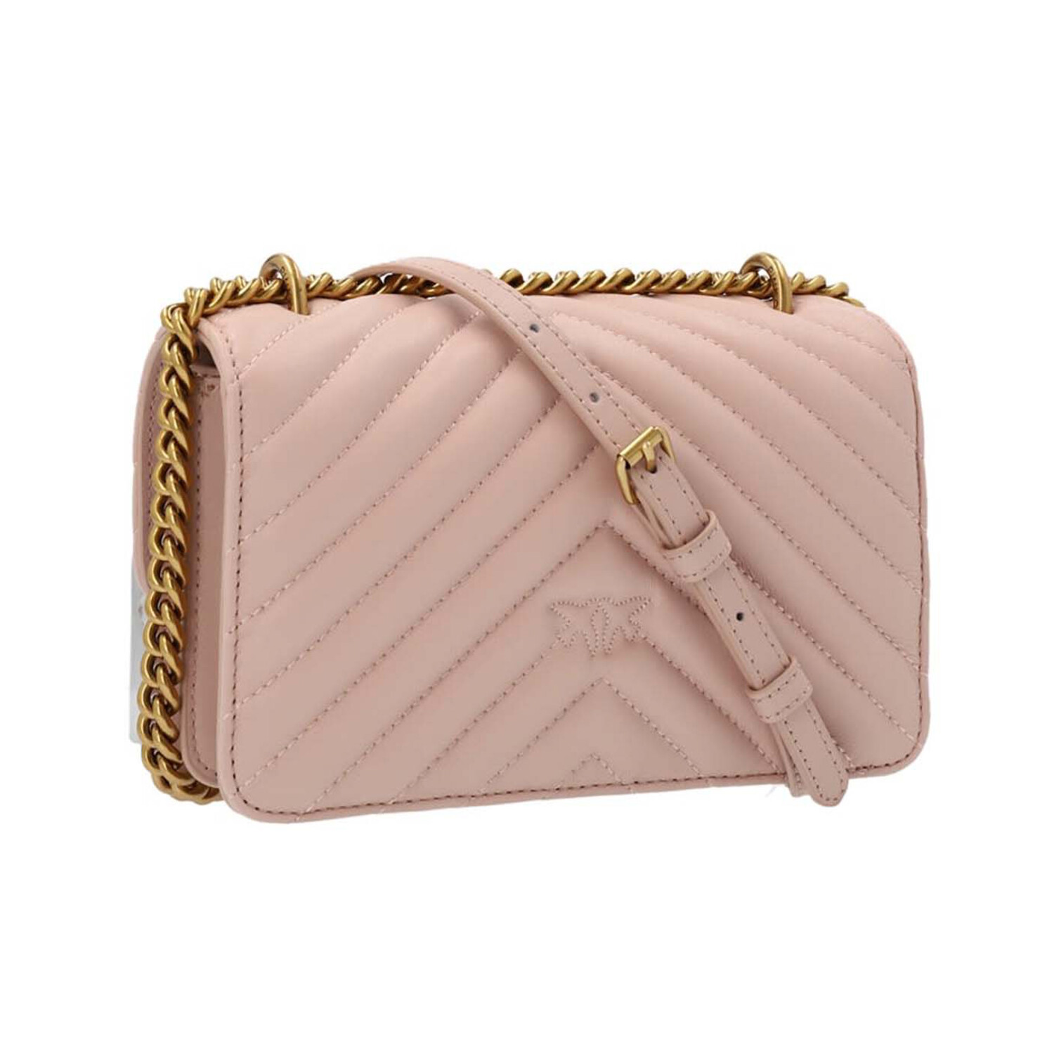 PINKO // Love Mini Icon Chevron Handbag // Pink + Gold