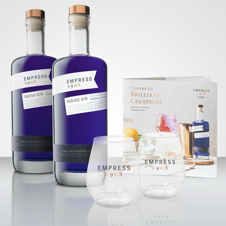 — Includes 2 Bottles of Empress 1908 Gin, 2 Acrylic Glasses (14 oz Each), & Cocktail Recipe Book