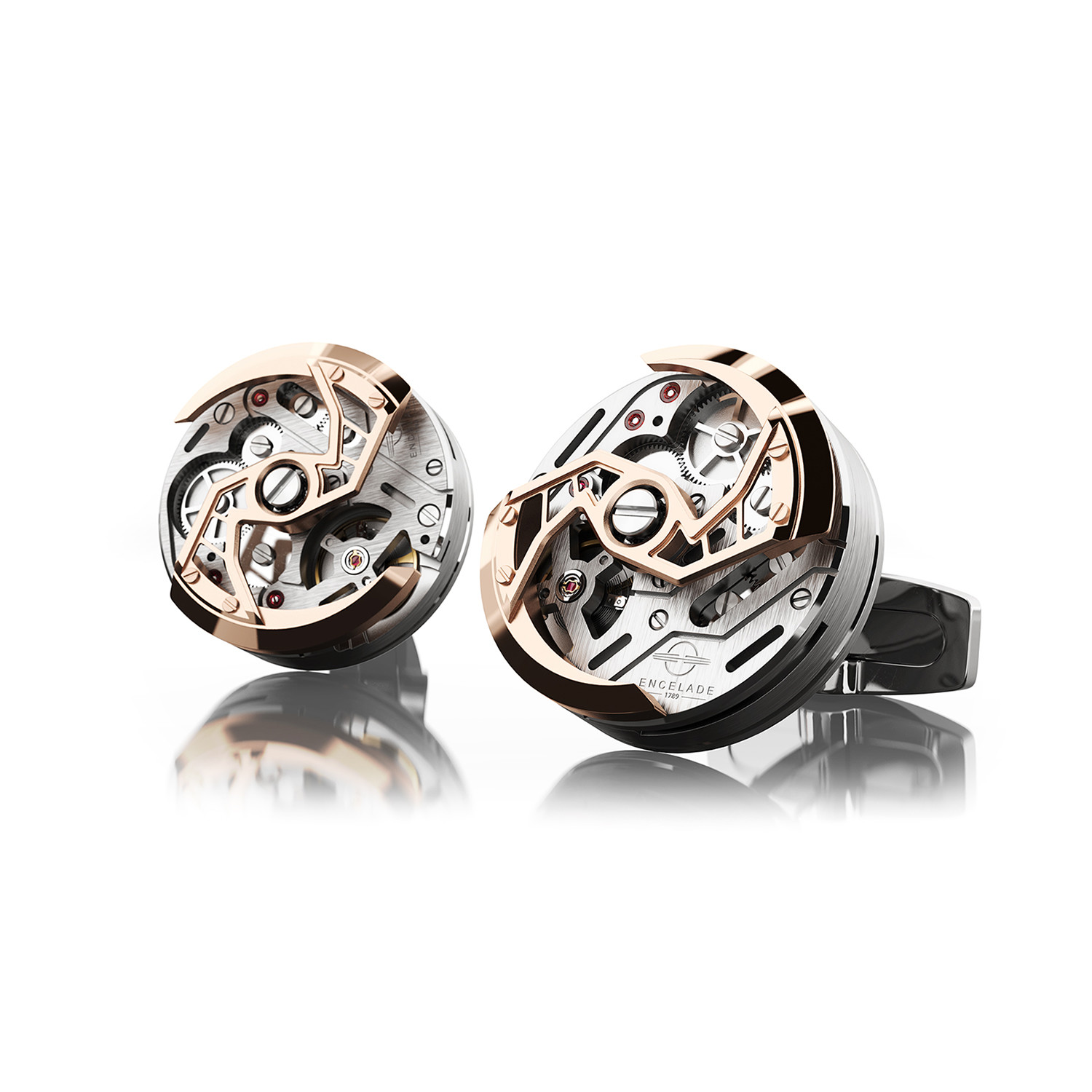 These Rotor cufflinks showcase a watch movement where each component - screws, bars, wheels - have been perfected in minute detail. The oscillating rotor creates an aesthetic that is truly mesmerizing.