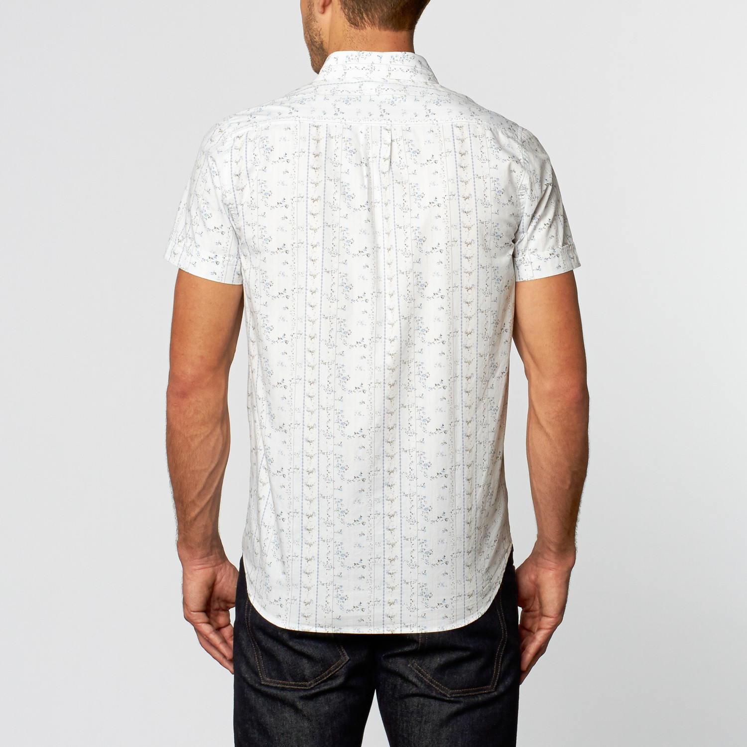 Luther Striped Floral Short-Sleeve Shirt // White + Blue