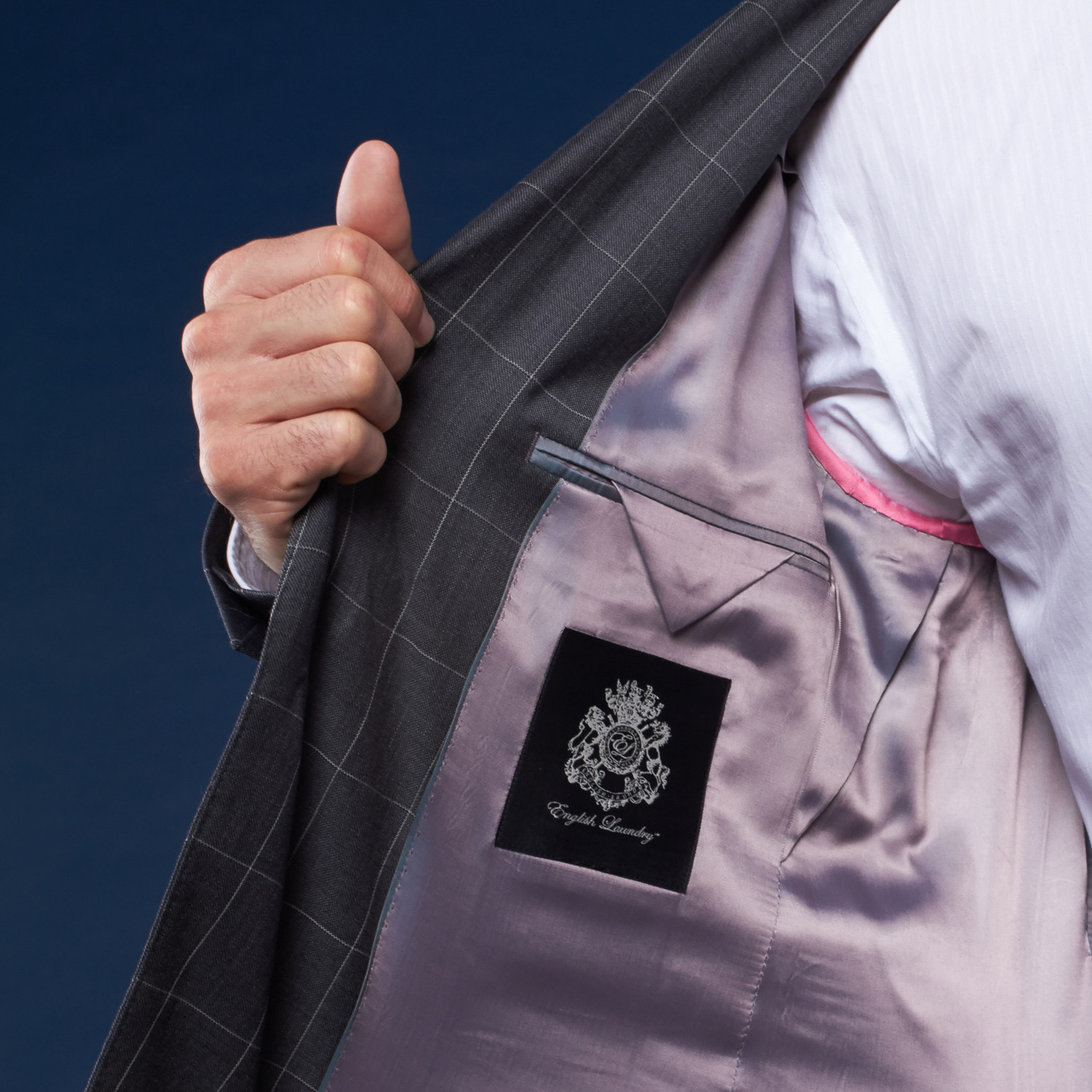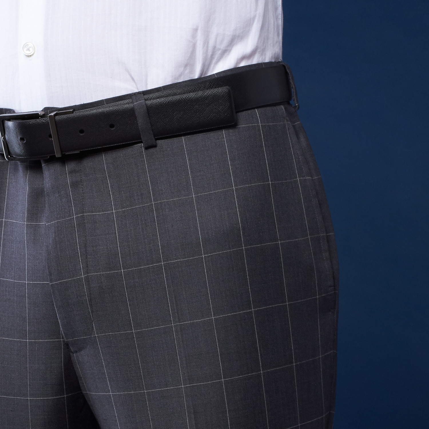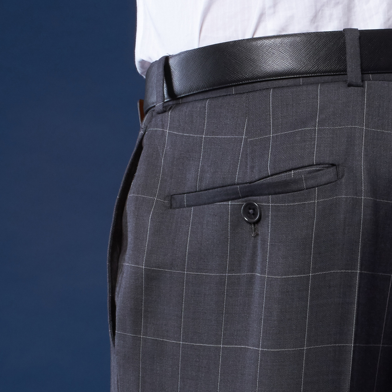 A sharp look done in a classic fabrication, this Charcoal Window Pane Suit makes great use of its geometric but delicate windowpane. With three tuck-down piped flap pockets and a five-button cuff, it's a dapper way to dress for work.