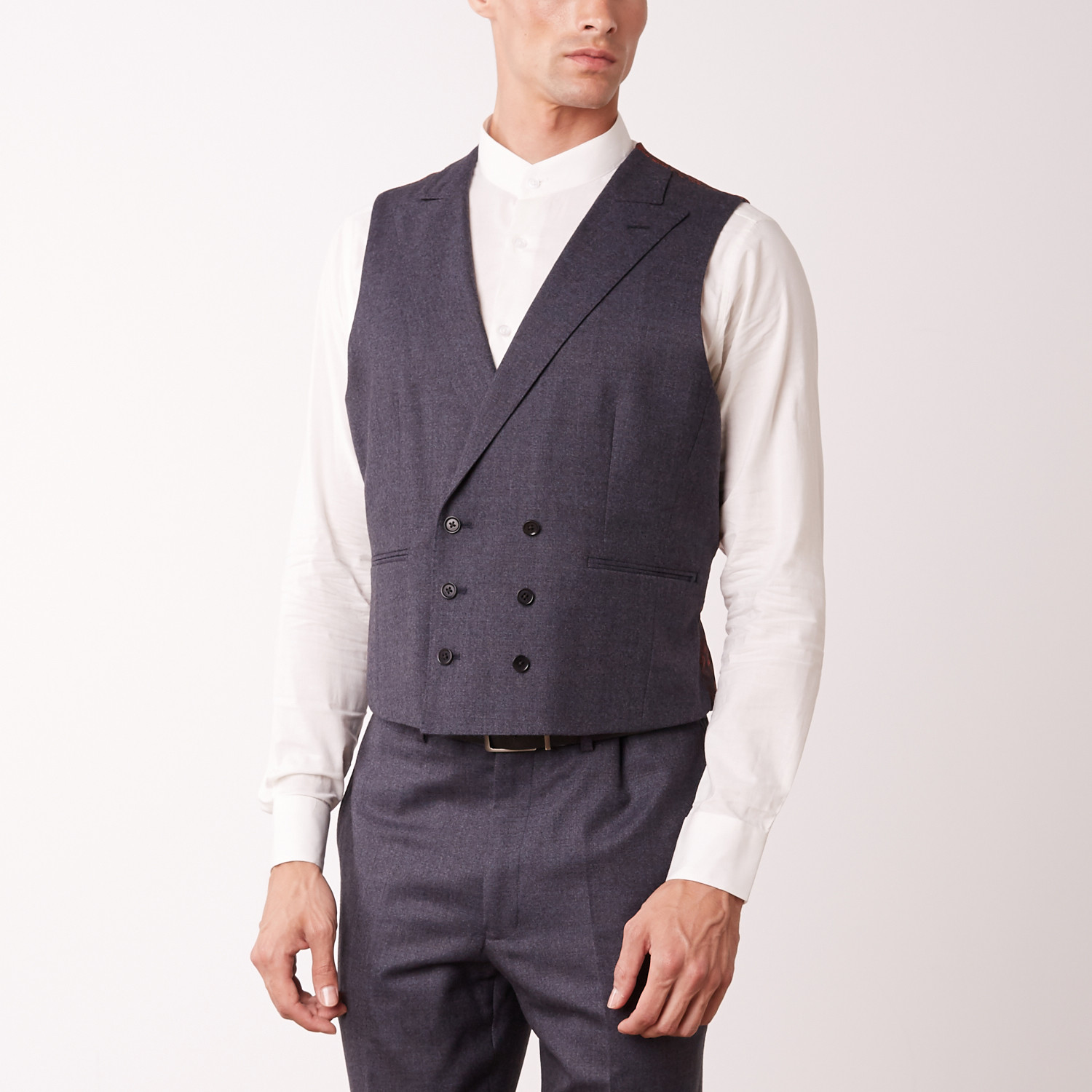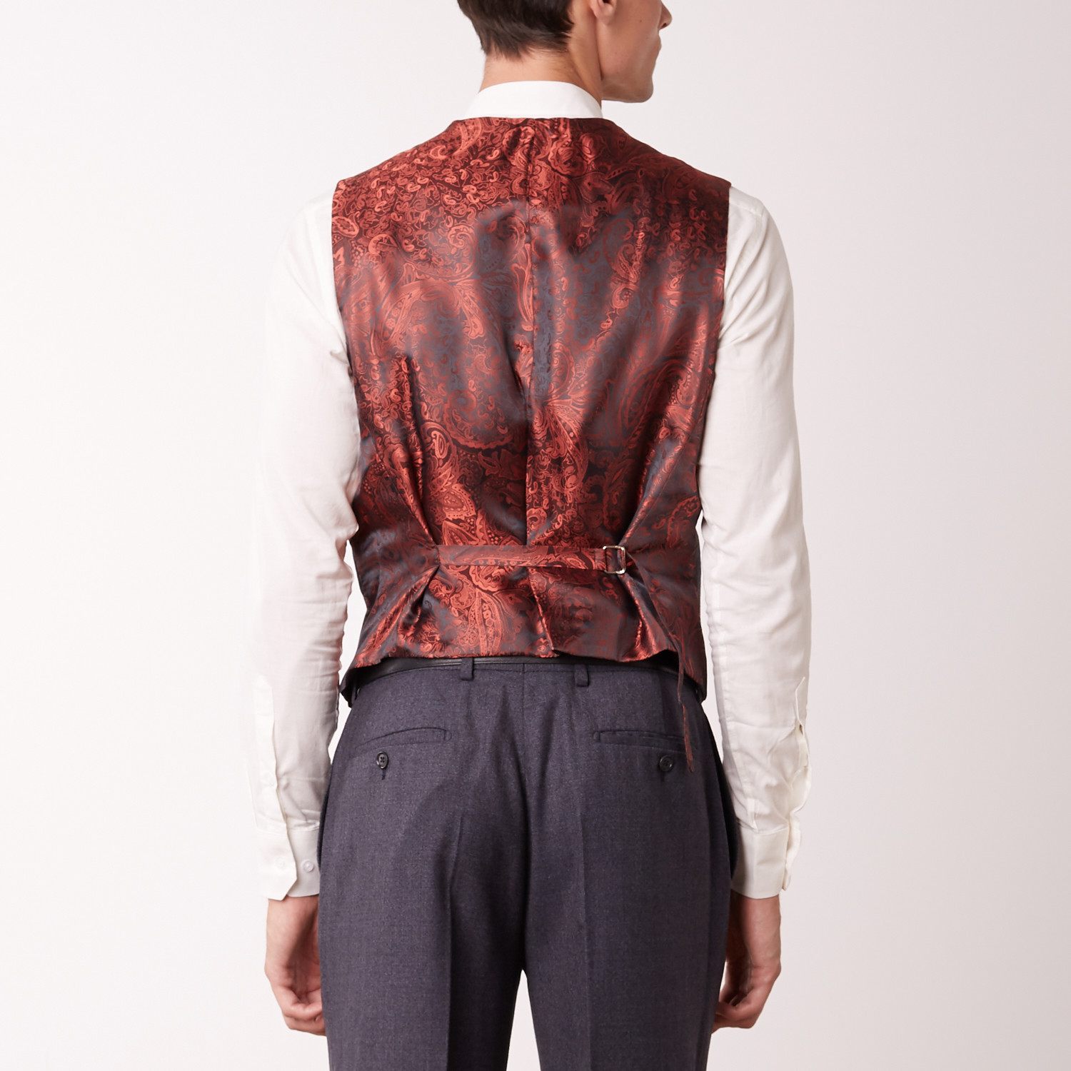 4BSV Double Breasted High Peak Lapel Vested Suit // Gray Orange Speck
