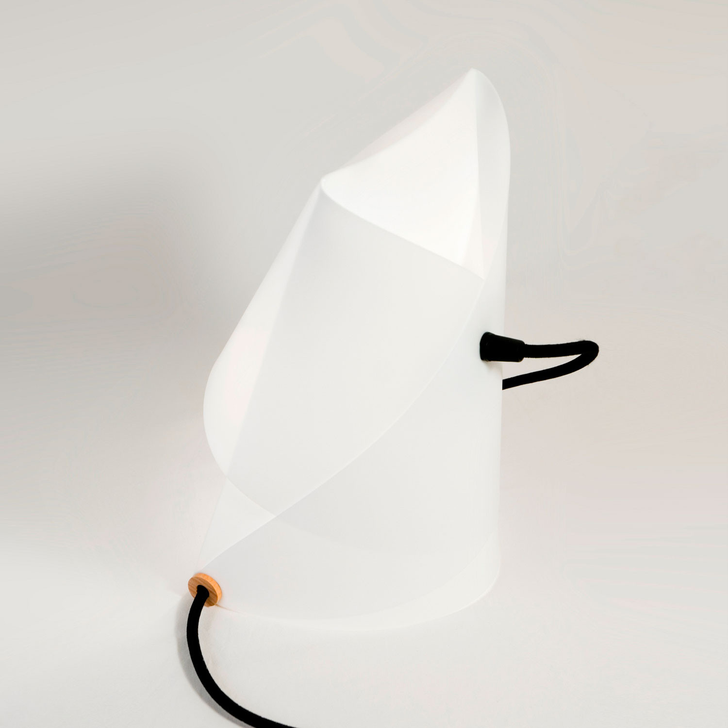 This high concept lamp is based on Furoshiki—the Japanese art of folding cloth. This unique Japanese tradition promotes caring for the environment and reducing waste as the cloth itself is eco-friendly. With a technique that's similar to origami, Furoshiki is often used as gift wrap or for ornamental decor. This lamp is semi-sheer and striking for a lighting concept that's both functional and aesthetic.