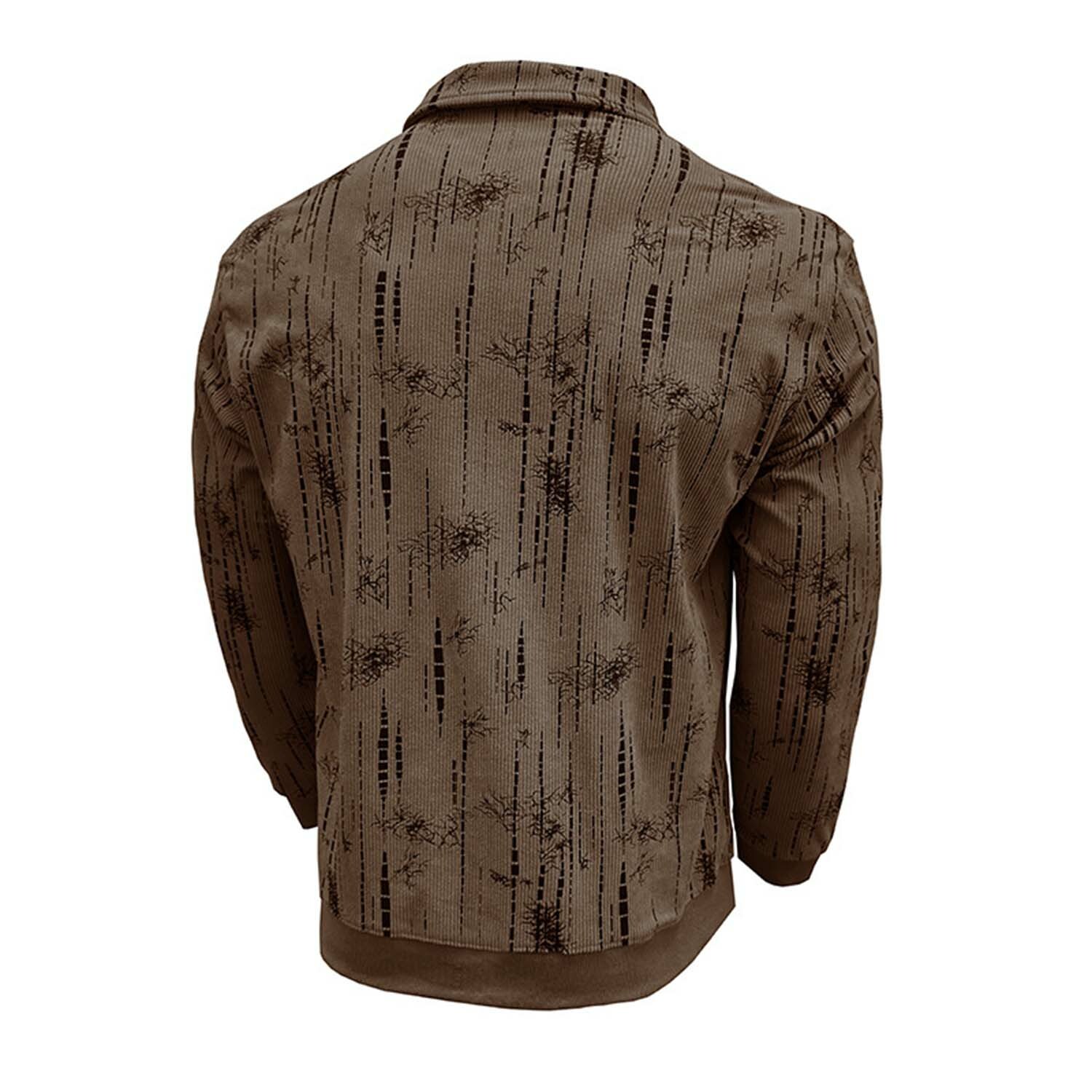 Abstract Pattern Corduroy Long-Sleeve Polo // Dark Brown