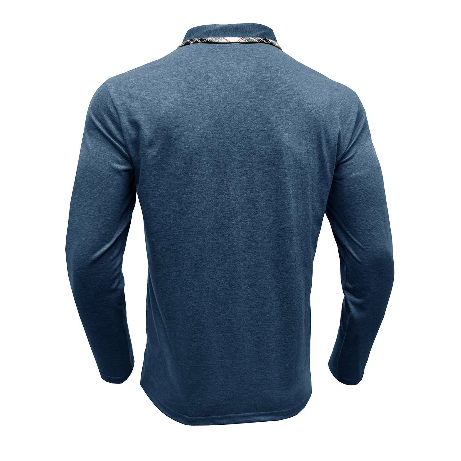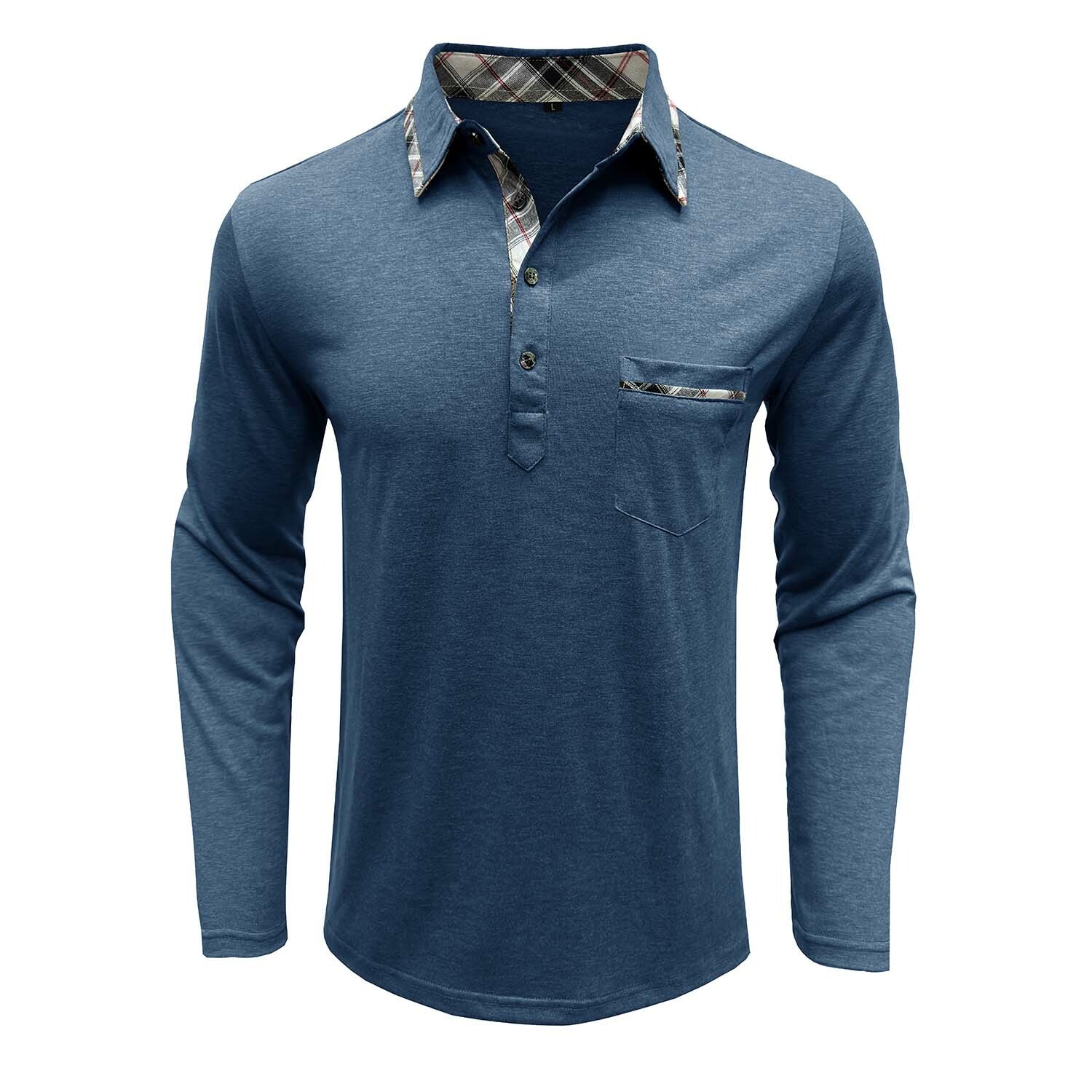 Neck Details Front Pocket Chest Long-Sleeve Polo // Blue