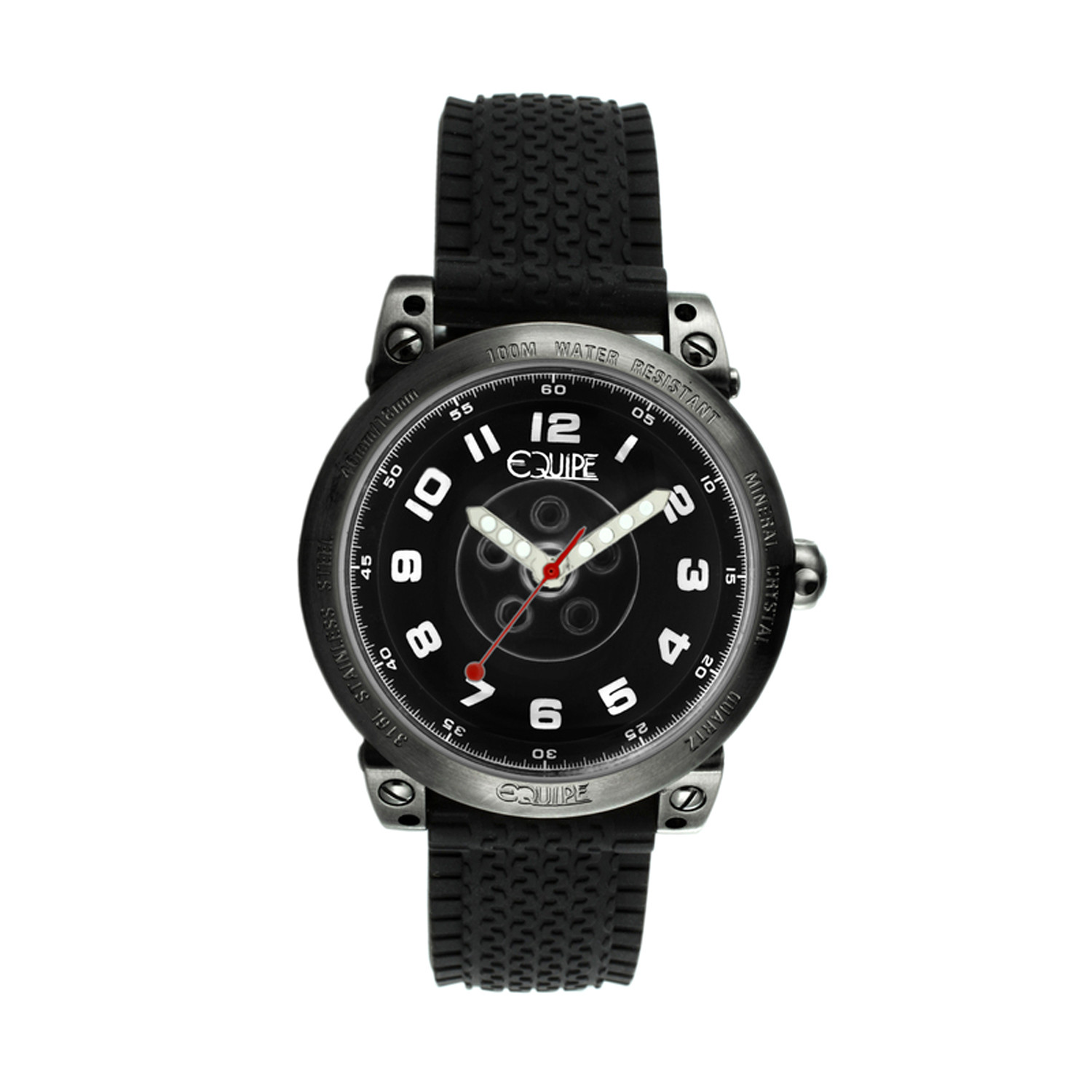 Equipe watches are all about the unbridled spirit and ravishing beauty of automobiles. Each Equipe watch recalls some high-option auto features from the engine to the exhaust, from the interior to the exterior, from the tiniest ball joint to the most obvious paint color. Equipe embodies identifiable parts of the car, like gaskets, pistons, chains and gauges with enviable reality and daring design.